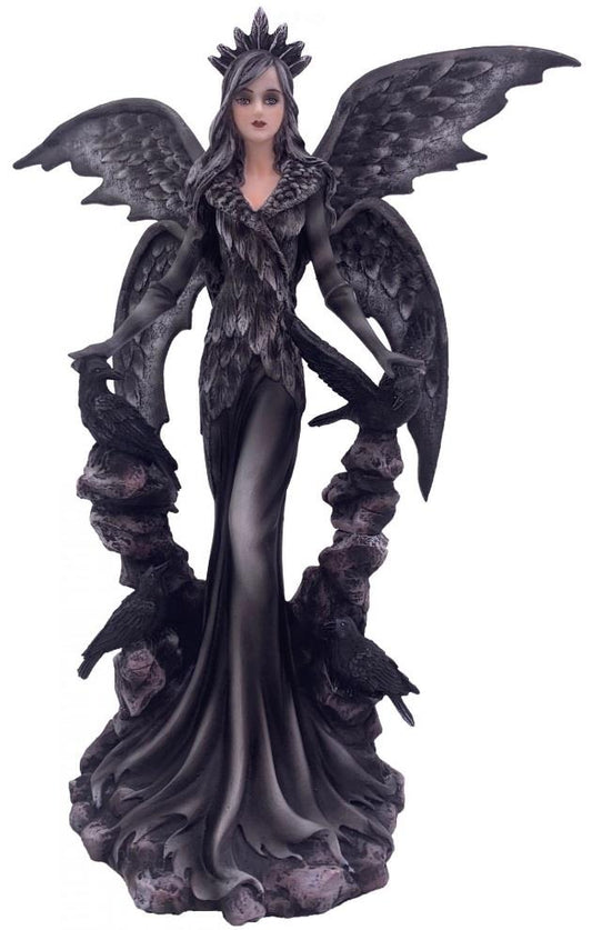 Gothic Dark Angel Figurine with Crown Raven Resin Statue Fantasy Ornament 31cm