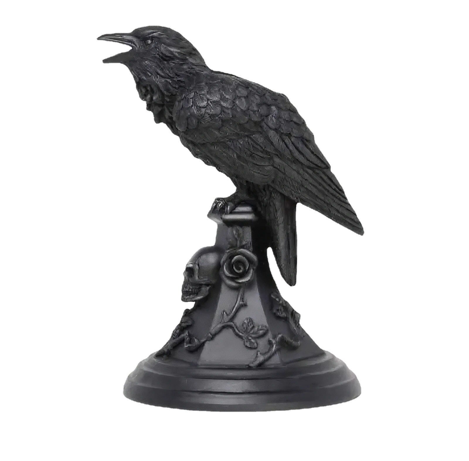 The combination of the iconic crow and the wise owl symbolizes the dualities of nature, offering a perfect contrast of dark and light, making it a versatile piece suitable for any gothic or Halloween-themed decor. The rich, textured finish of the resin enhances its visual appeal, ensuring it stands out in any display.