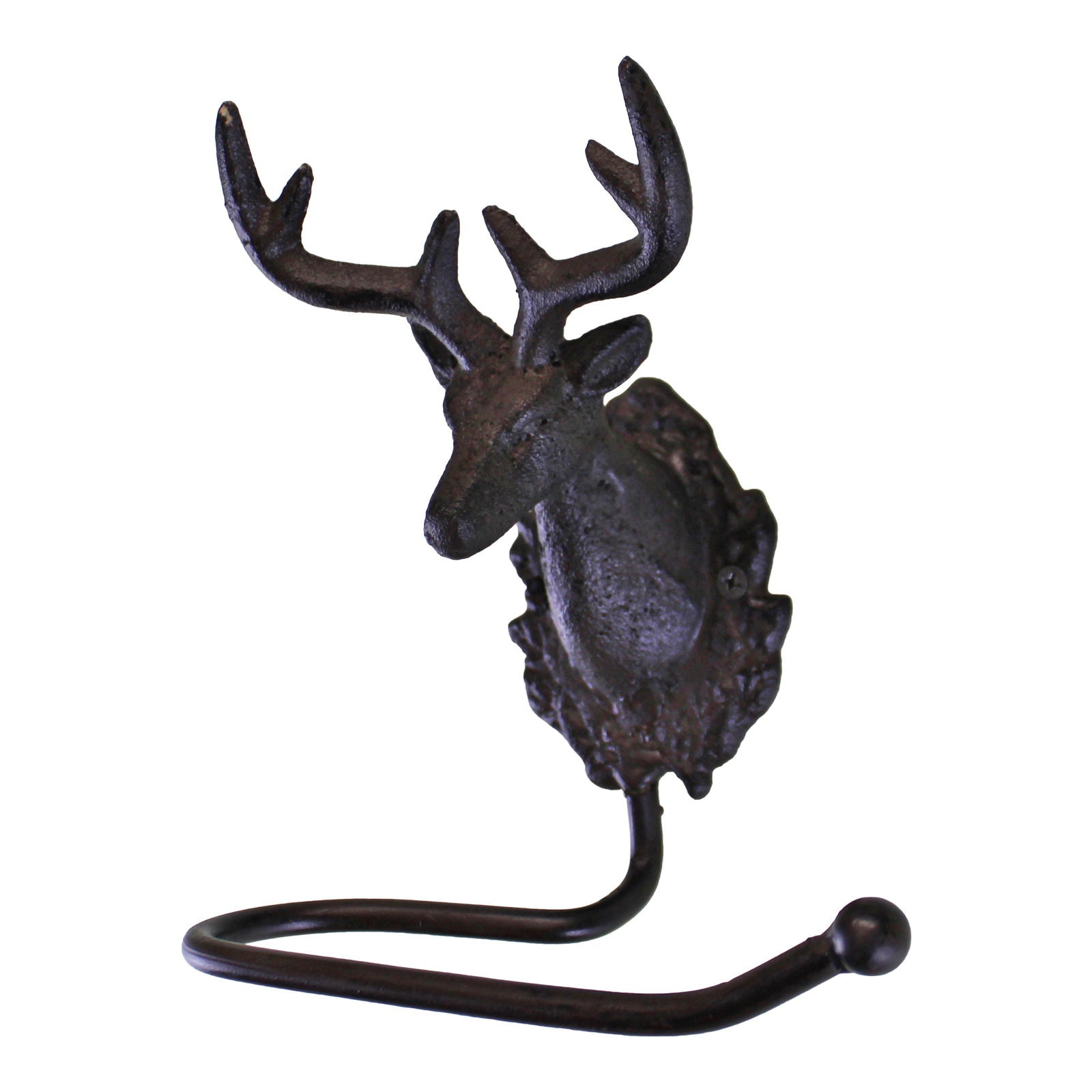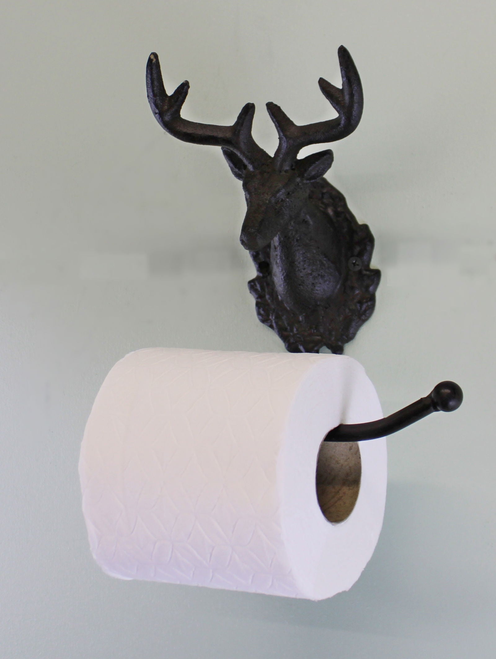 Cast Iron Rustic Toilet Roll Holder, Stag Head Design