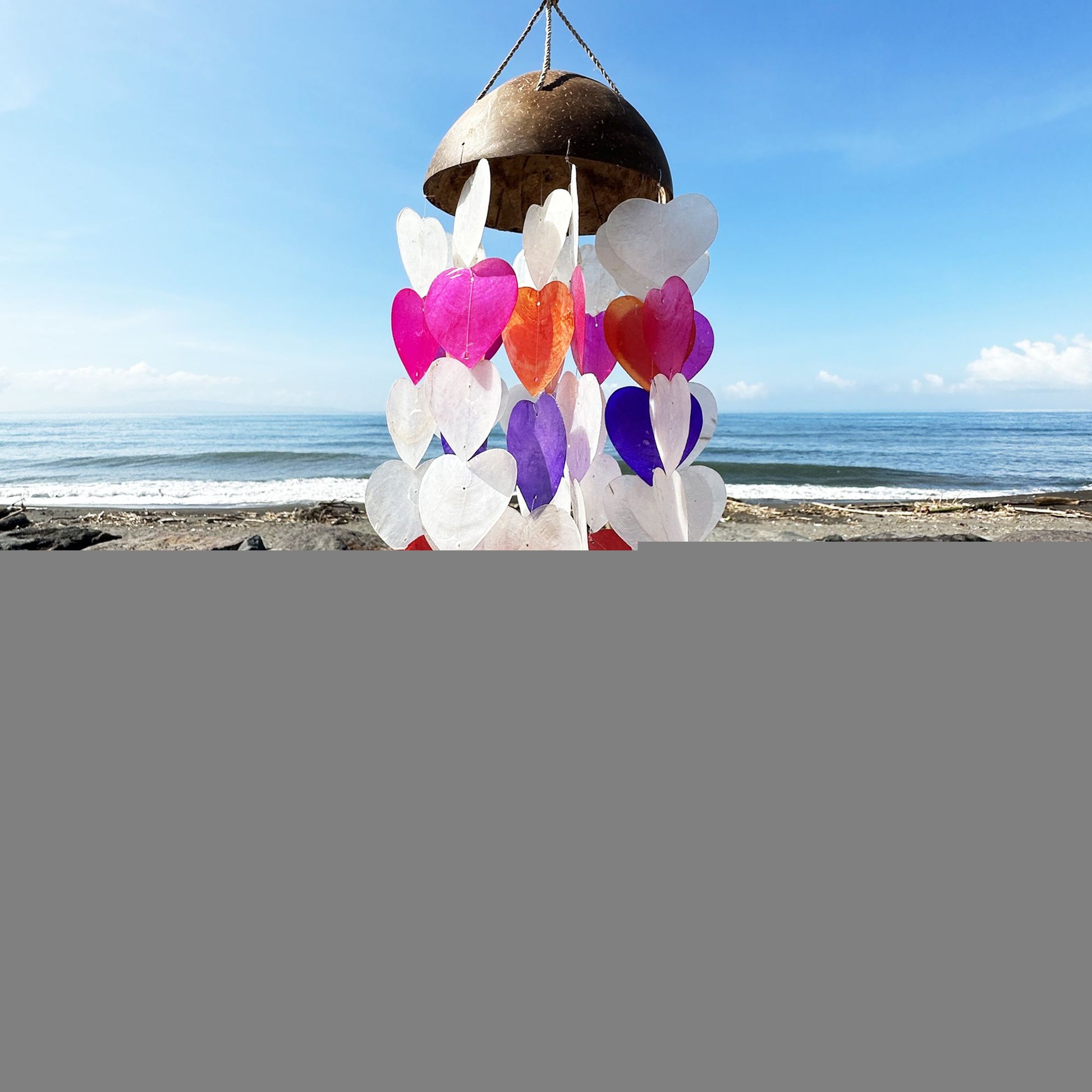 Bring a touch of tropical elegance to your outdoor space with our Coconut & Capiz Windchimes - Big Hearts - 40cm. Handcrafted from sustainable coconut shells and shimmering capiz, these beautiful windchimes create enchanting melodies with every breeze. Their unique heart-shaped design adds a charming vibe to your garden, patio, or balcony, making them perfect for enhancing your relaxation time. Hang them in your favorite spot and let the soothing sounds of nature uplift your spirit. Ideal for gifting or treating yourself, these windchimes are a delightful way to embrace the beauty of nature.