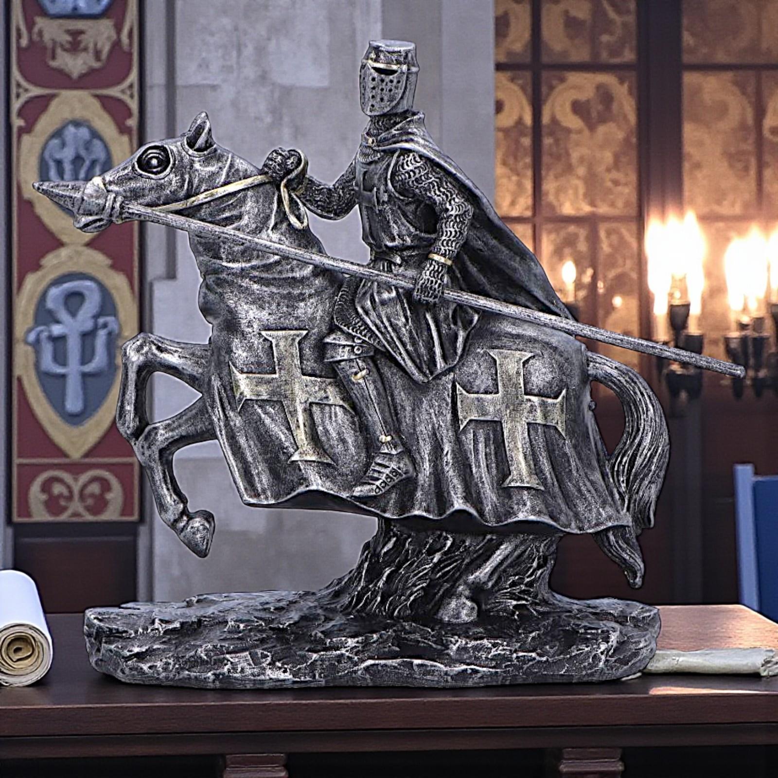 Crusader Templar Warrior Statue Horseback Knight Figurine Medieval Ornament