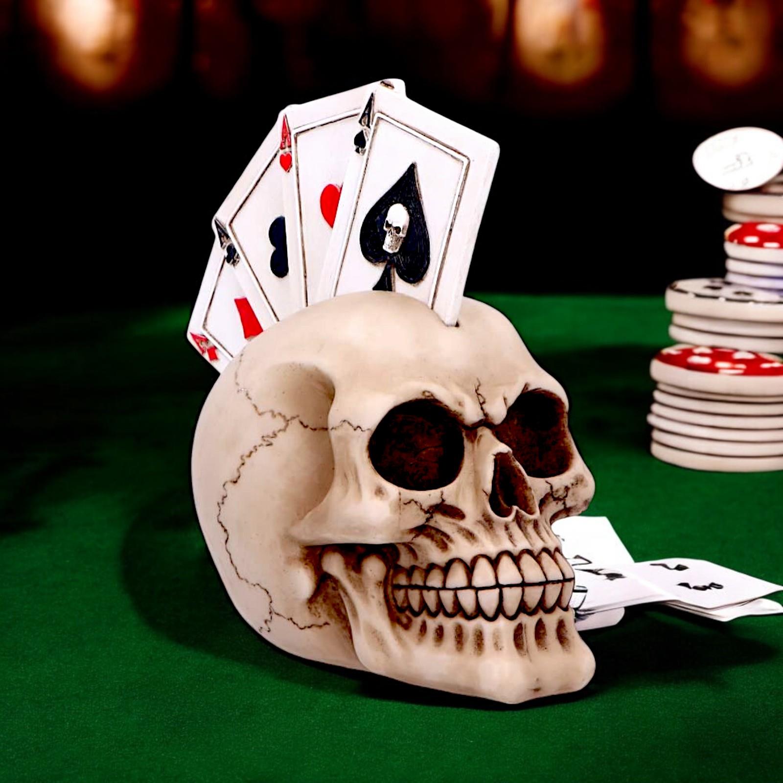 Gothic Poker Skull Ornament Fantasy Home Decor Figurine Halloween Sculpture Gift