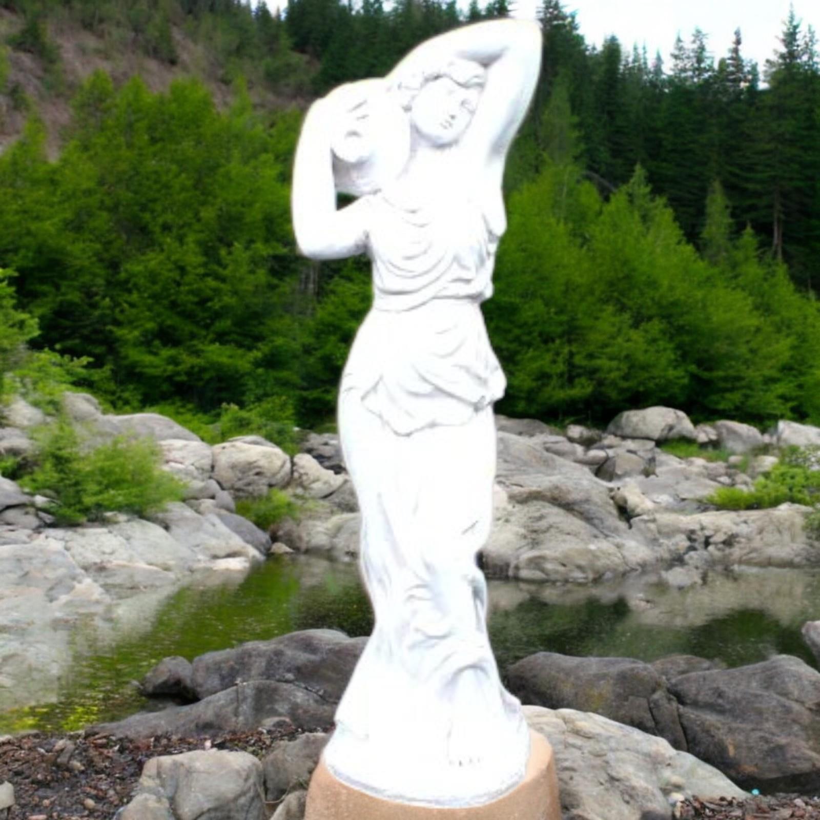 Bring timeless elegance to your outdoor space with this Stone Effect Lady with Urn Statue. Standing at 84cm tall, this classical garden ornament captures the grace of a lady supporting an urn on her shoulder, finished to resemble weathered marble. Crafted from high-quality polyresin, this durable statue is built to withstand outdoor conditions while maintaining its stunning appearance. Ideal for adding sophistication to gardens, patios, or entryways, this decorative sculpture is sure to be a captivating centerpiece. With intricate detailing and a weather-resistant design, this statue combines beauty and longevity. Measurements: 25.4 x 22.9 x 83.8cm.