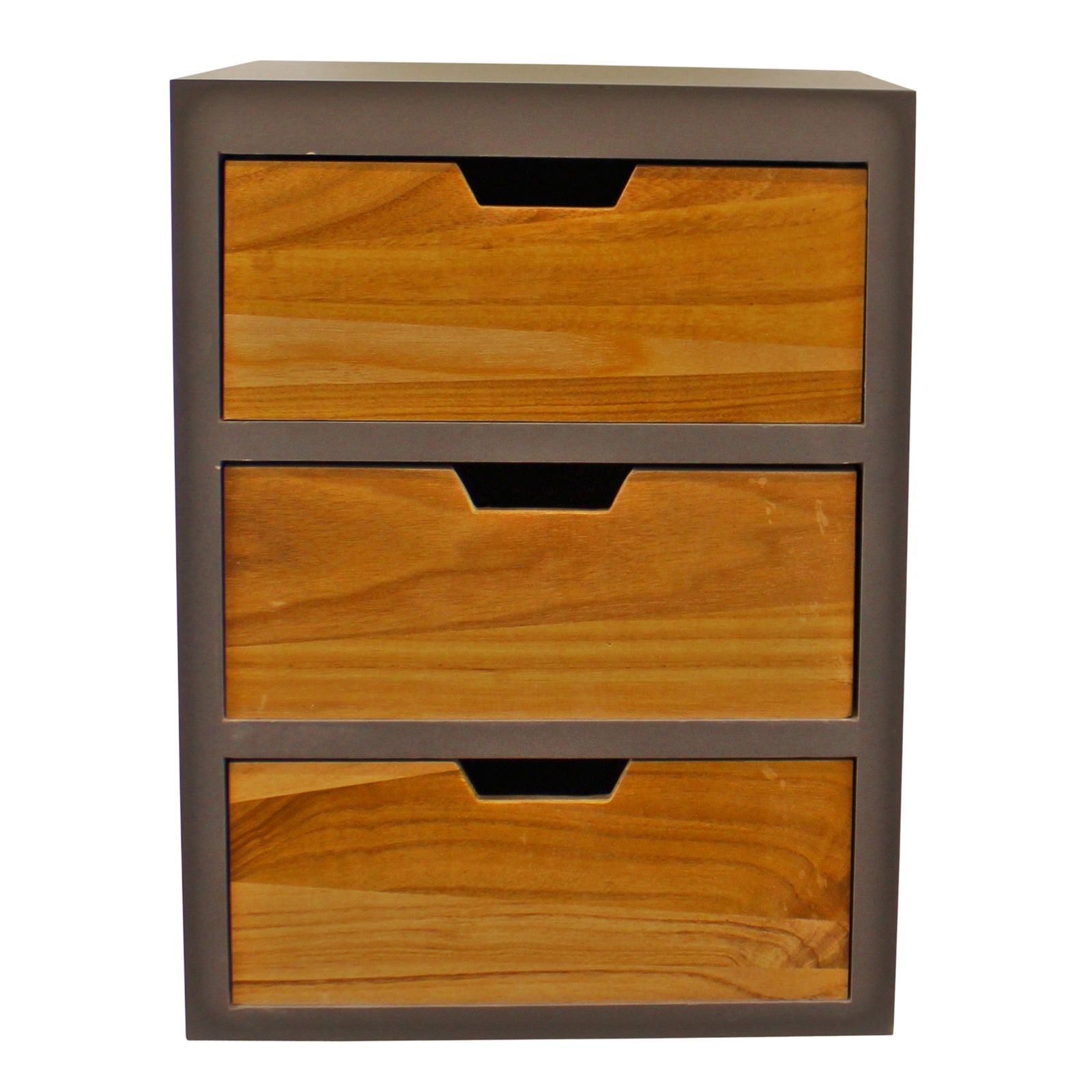 3 Drawer Chest In Grey Finish With Natural Drawers With Removable Legs