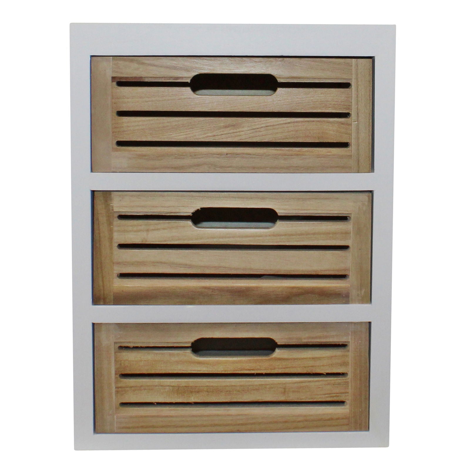 3 Drawer Unit In White With Natural Wooden Drawers With Removable Legs