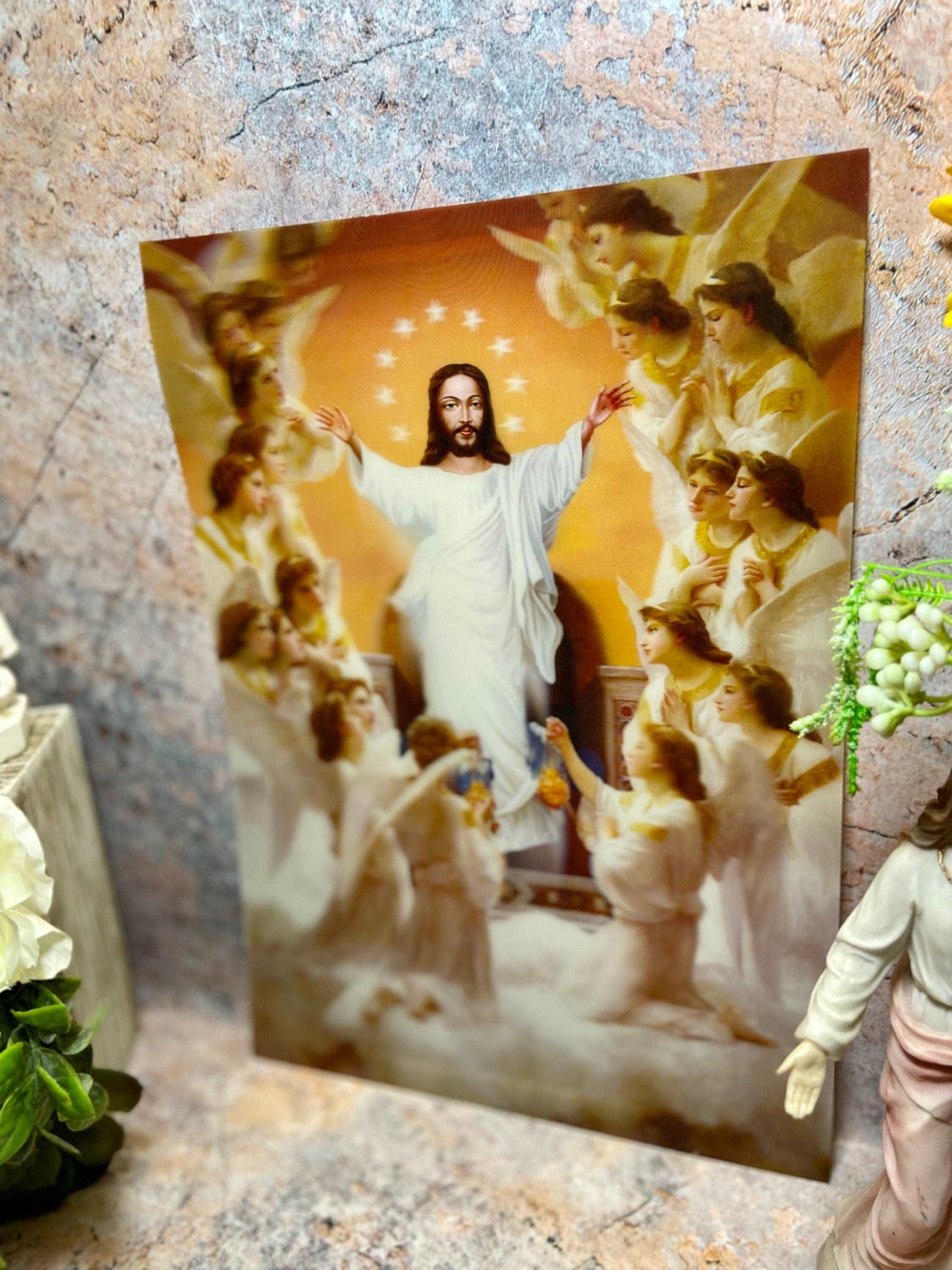 3D Holographic Poster 35x25cm - Risen Jesus with Angels - Self-Adhesive Lenticular Religious Decor
