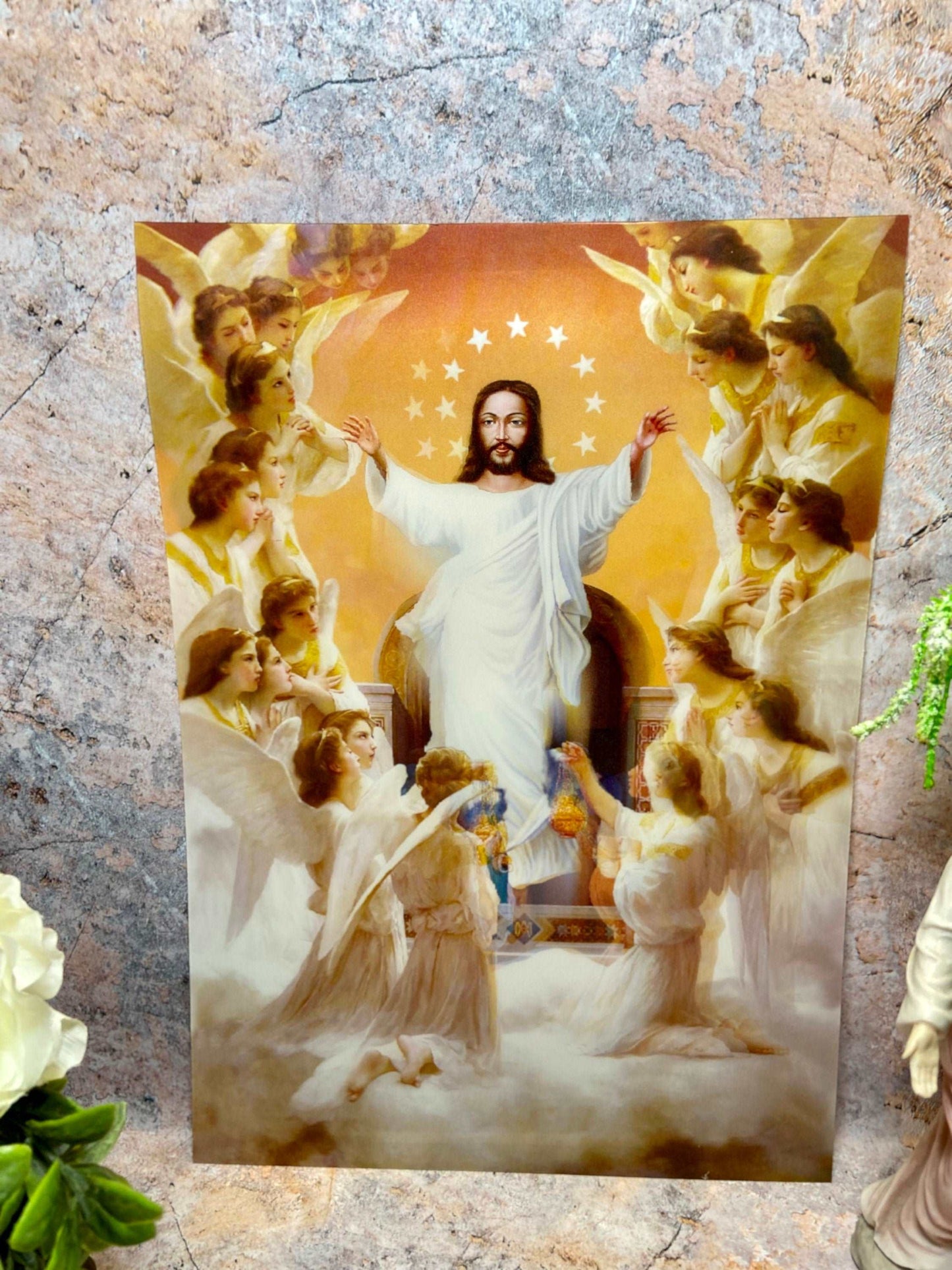 Dive into a celestial portrayal of divinity with our 3D Holographic Poster of 'Risen Jesus Surrounded by Angels'. This 35x25cm image isn't just a representation; it's a vivid narrative, designed to captivate the essence of spiritual awe and wonder.