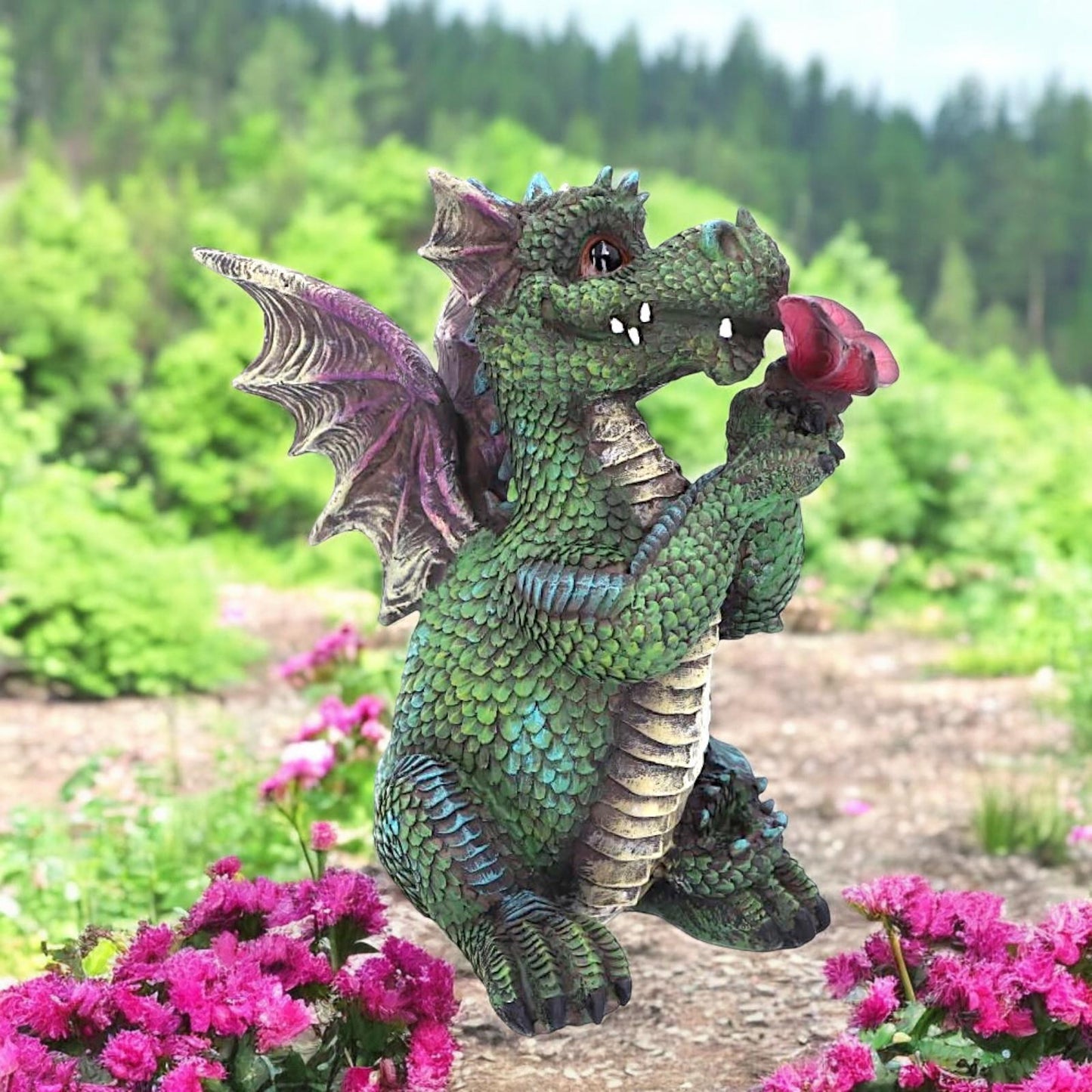 Adorable Dragon with Butterfly Figurine | 17.5cm Hand-Painted Resin Fantasy Collectible Decor
