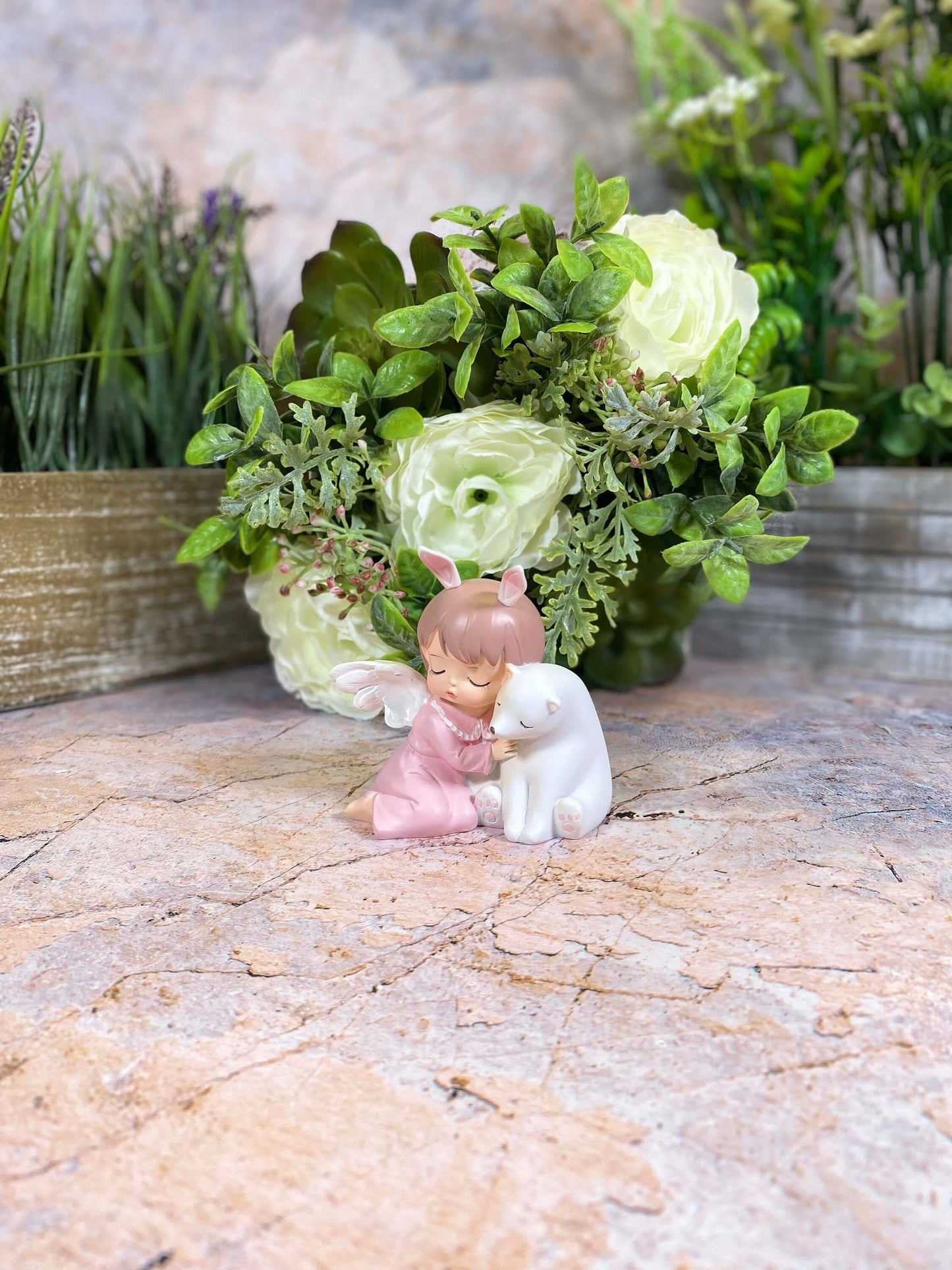 Enhance the ambiance of your living space with our enchanting "Adorable Peaceful Angel Baby Girl with Polar Bear Companion Sculpture Figurine" from our Fantasy Angels Collection. This exquisitely crafted figurine features a serene angel baby girl peacefully resting with her loyal polar bear companion.