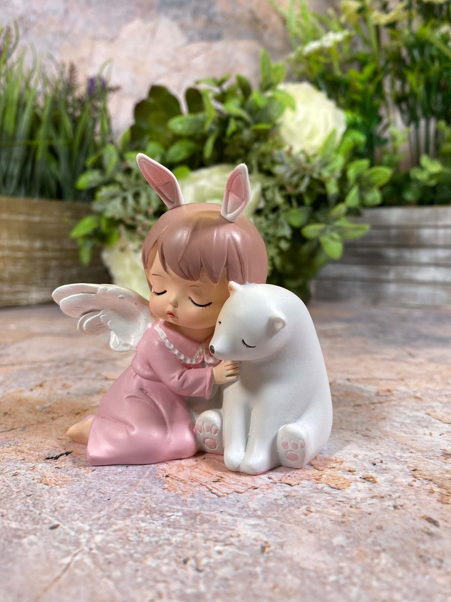Adorable Peaceful Angel Baby Girl with Polar Bear Companion Sculpture Figurine Fantasy Angels Collection