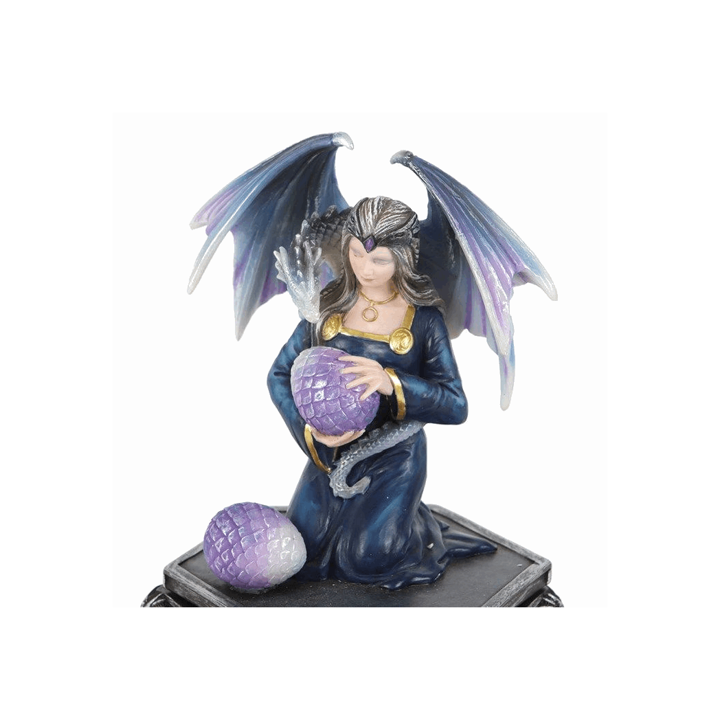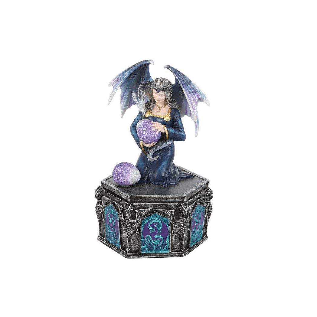 Add a touch of magical fantasy to your collection with this stunning, highly detailed resin box featuring Anne Stokes' famous 'Siblings' dragon artwork. Representing the renewal and growth of spring, this intricately sculpted figurine box makes the perfect storage piece for your small treasures. A unique addition to any fantasy lover's collection, it blends artistry with practicality. The design features vibrant colors and accents that showcase Anne Stokes' enchanting world of dragons. Officially licensed and part of the Dragon Friendship collection.