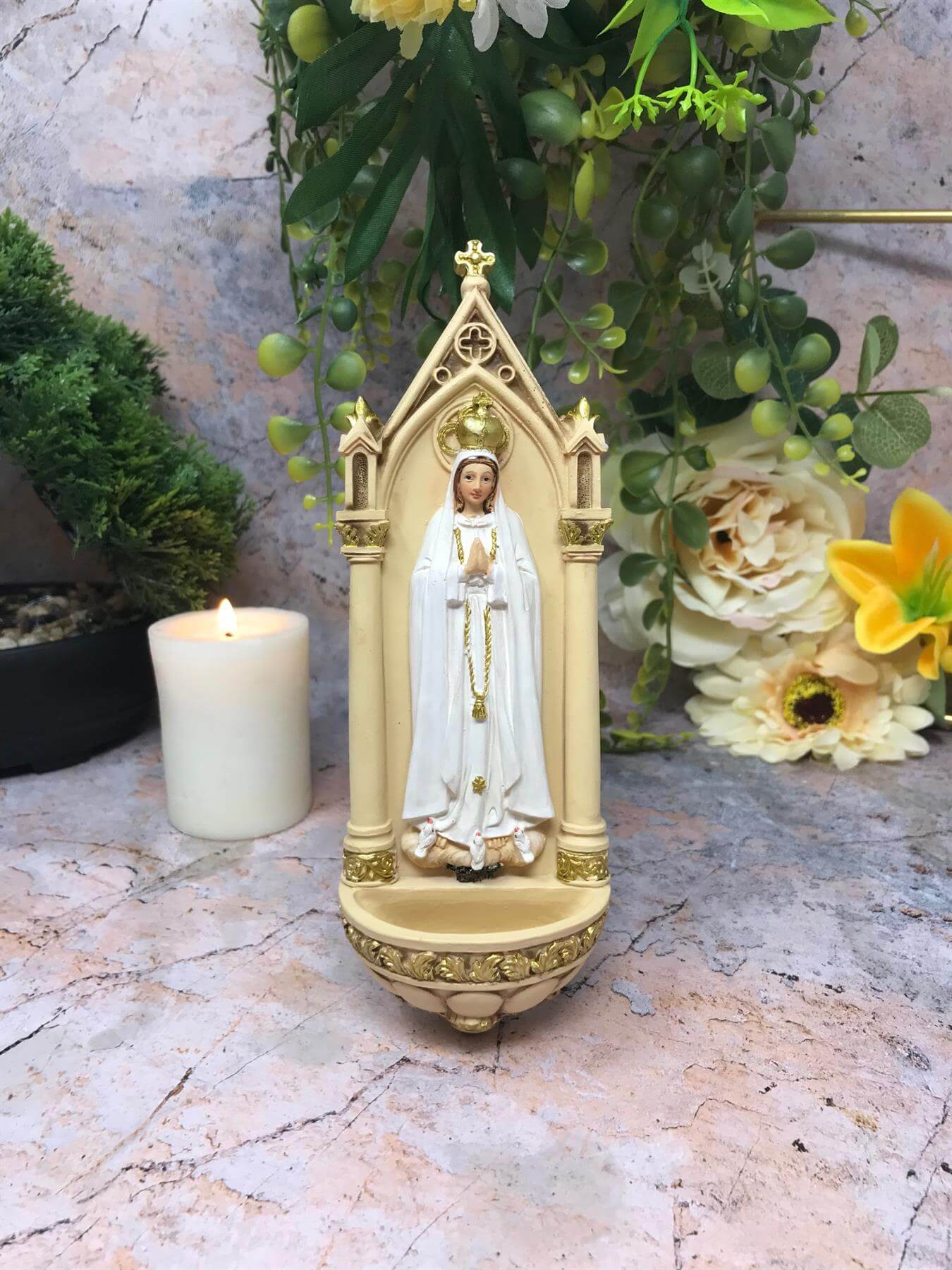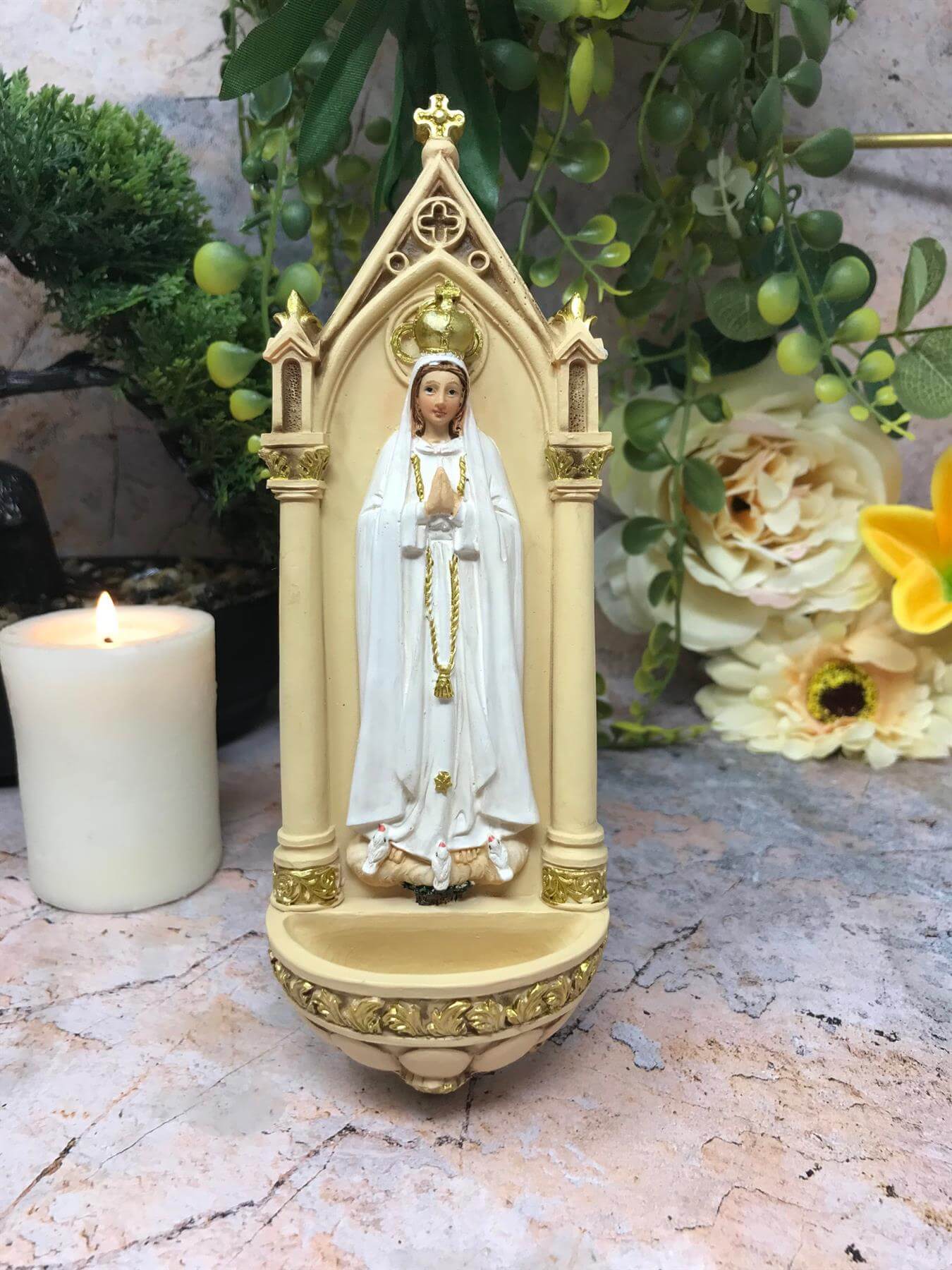 Blessed Virgin Mary Our Lady of Fatima Water Font Wall Plaque Statue Ornament Figurine for Home or Chapel