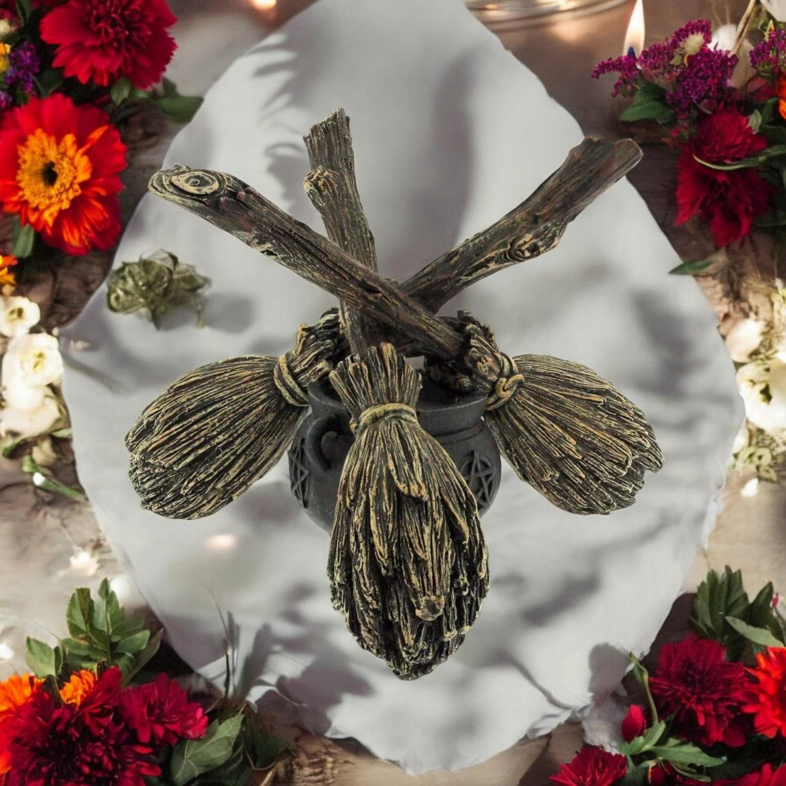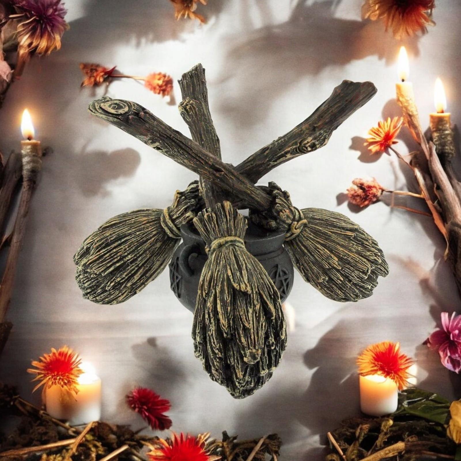 Broomstick Crystal Ball Holder Wiccan Altar Pagan Decor Witchcraft Ornament