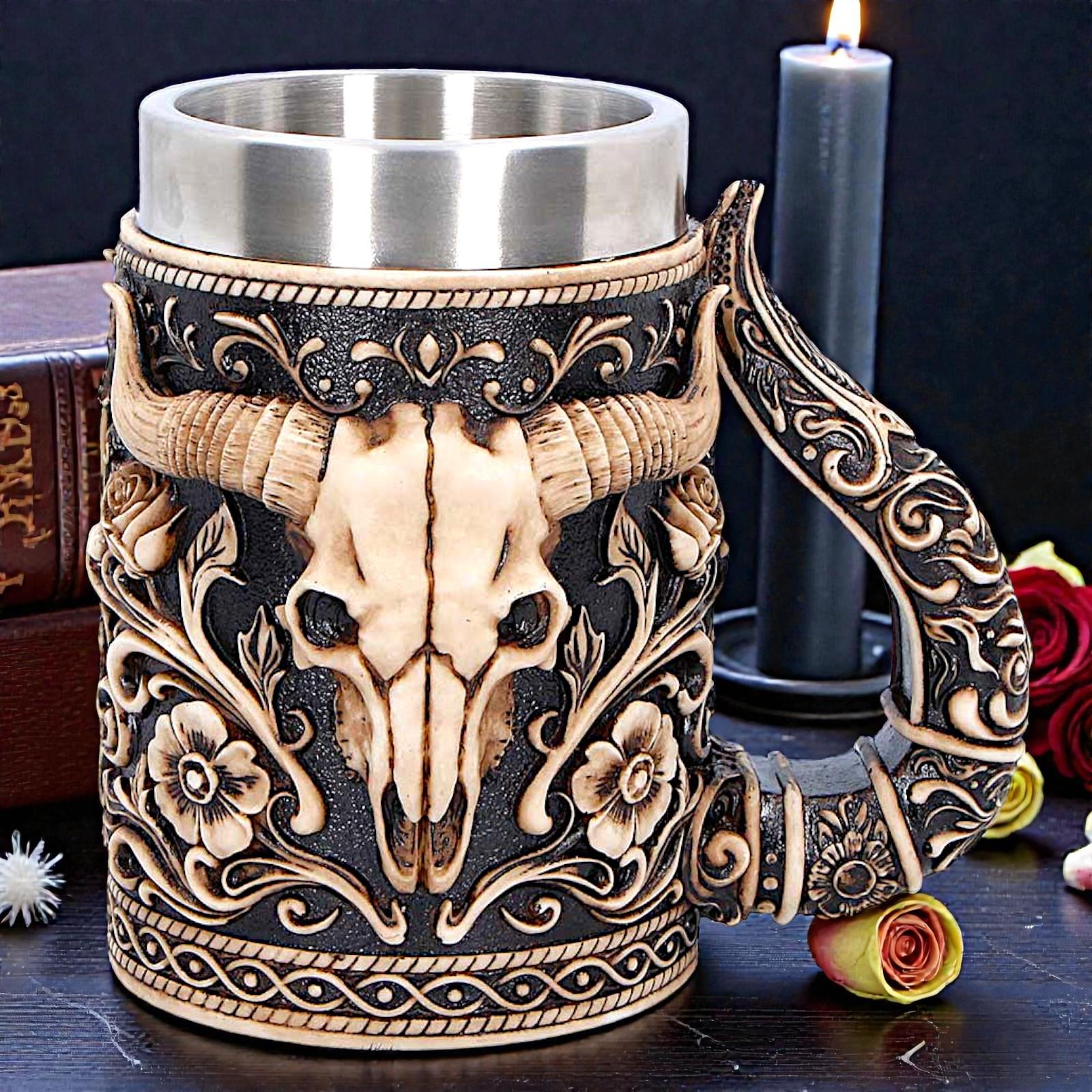 Bull Skull Tankard Western Cowboy Mug Gothic Barware Collectible Drinkware