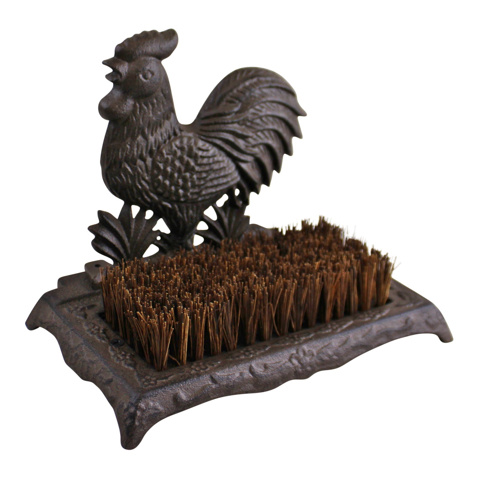The standout feature of this boot brush is undoubtedly its charming cockerel design, which adds a touch of whimsy and personality to your outdoor décor. Accompanied by intricate scroll and flower embossing at the base, this boot brush isn't just a functional tool; it's a decorative piece that enhances the aesthetic of your home.