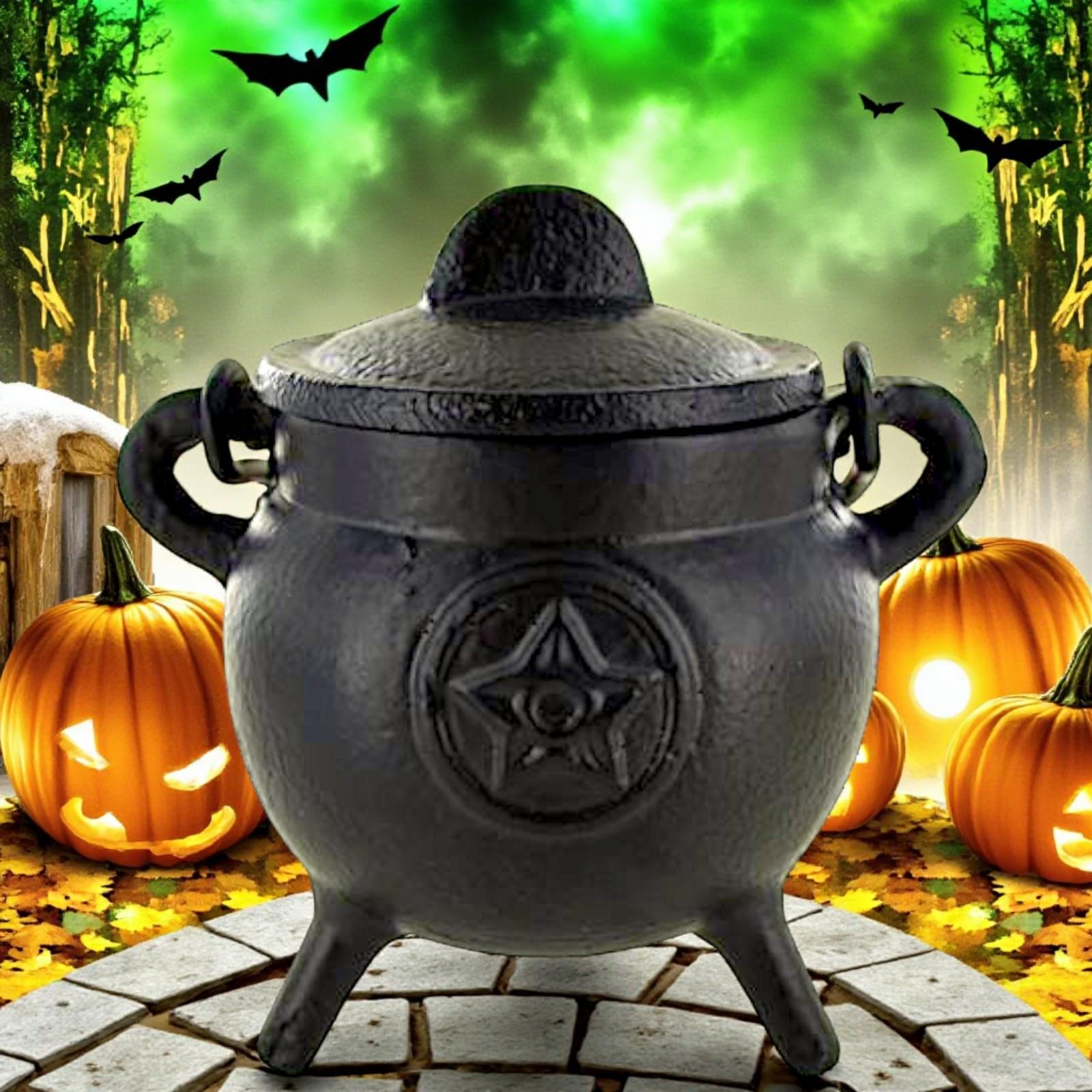 Bring power and protection to your sacred space with this Small Cast Iron Pentagram Cauldron, designed for Wiccan, Pagan, and Witchcraft rituals.