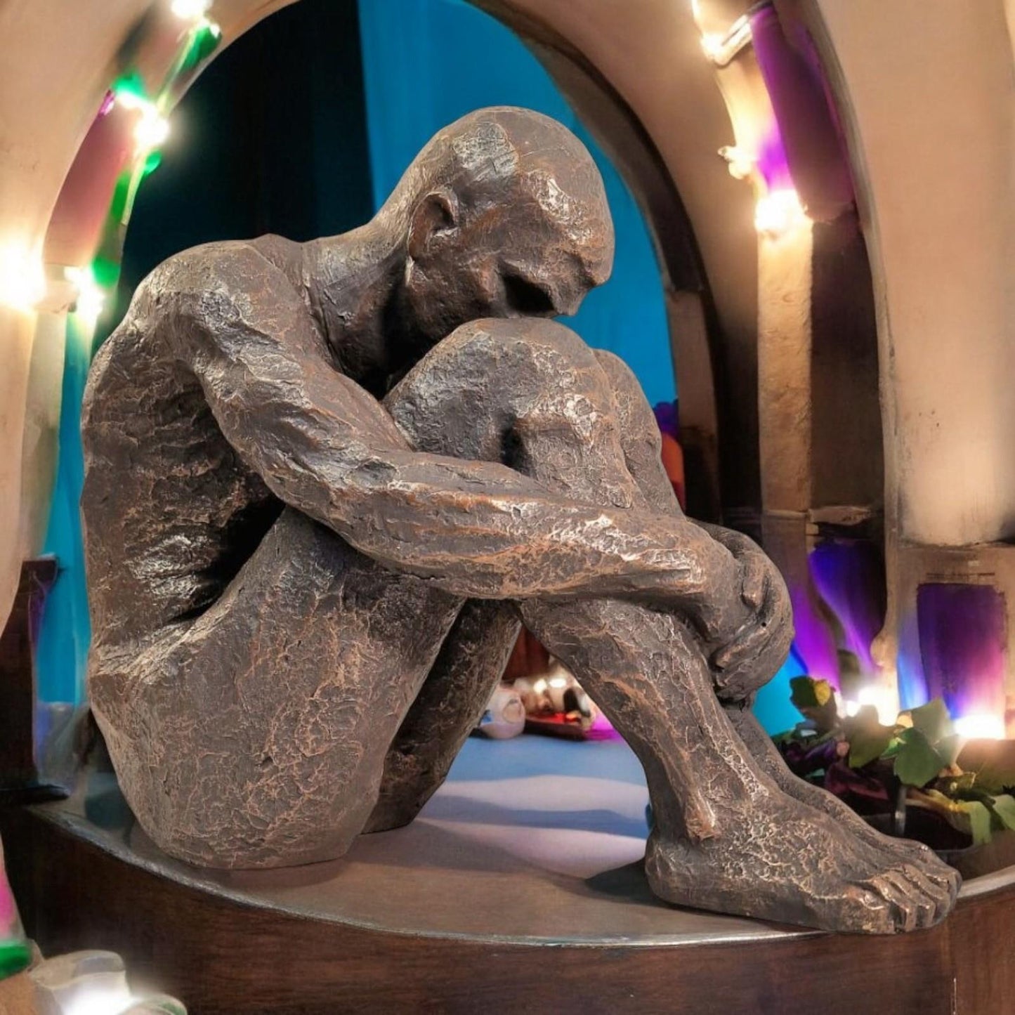 - Design: Abstract male figure in a seated position, symbolizing thought and introspection.