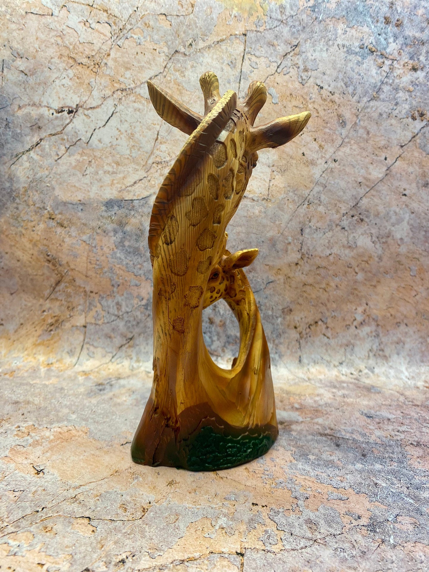Discover the beauty of the savannah with our meticulously crafted giraffe sculpture, designed to bring a touch of African wildlife into your living space. Standing proudly at 23 cm, this statue is made from high-quality resin, capturing the gentle essence and detailed texture of a giraffe's hide and the natural movement of its majestic neck.