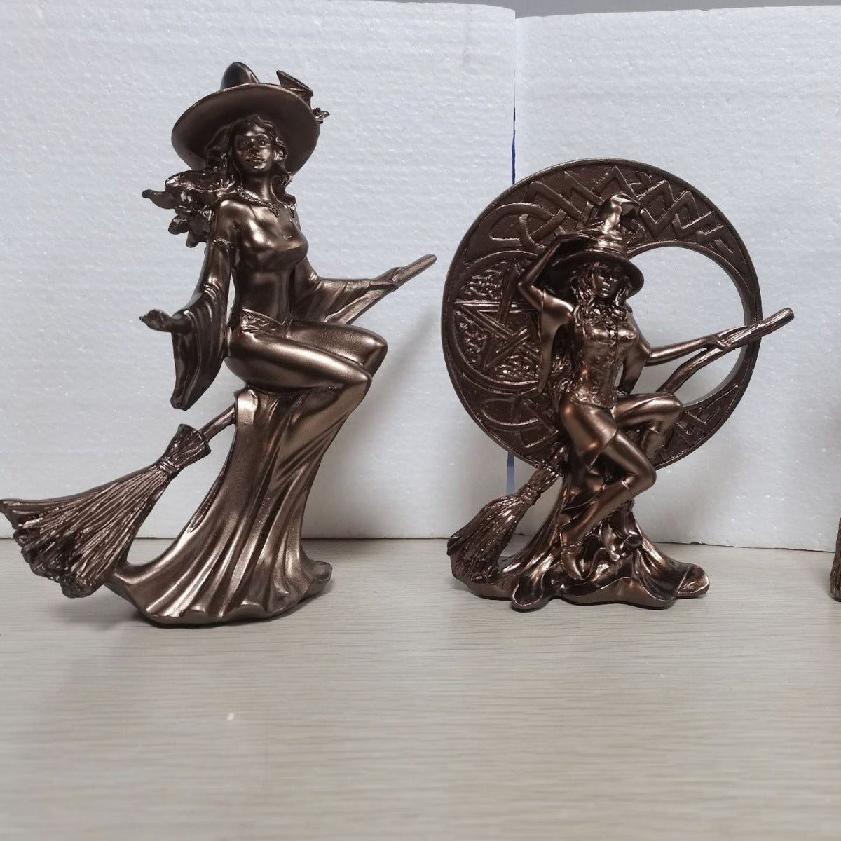 Each ornament features a stunning bronze finish, showcasing intricate details that bring the witchy theme to life. The European style of these pieces captures the essence of folklore and tradition, making them an ideal addition to your collection or a thoughtful gift for someone special. Whether you're a lover of the mystical, an admirer of unique crafts, or simply looking to enhance your home’s aesthetic, these ornaments fit seamlessly into various decor styles.