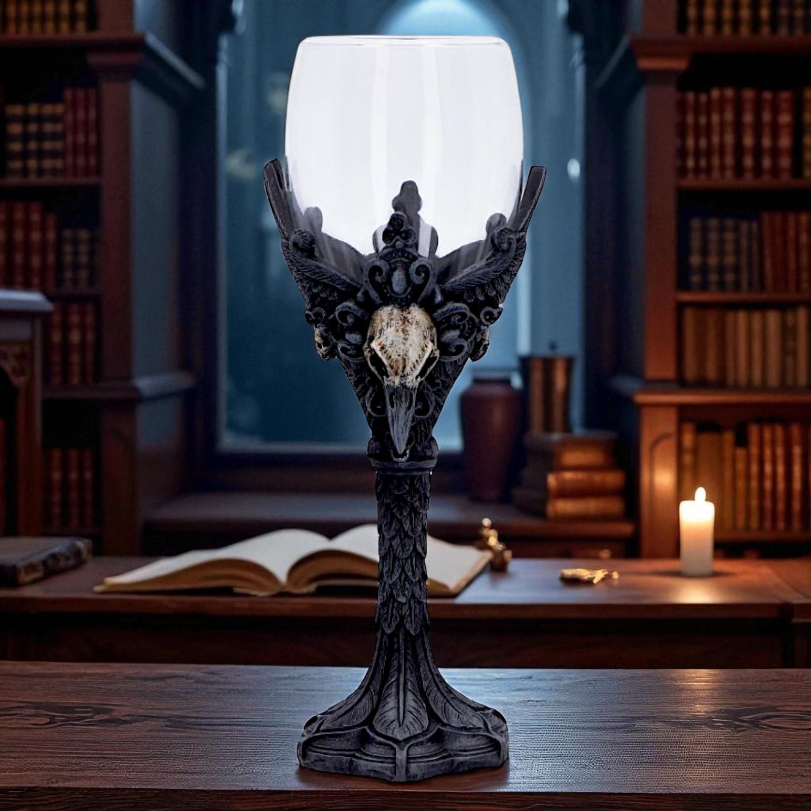 Fantasy Gothic Raven Chalice Goblet Skull Wing Design Drinkware Halloween Gift