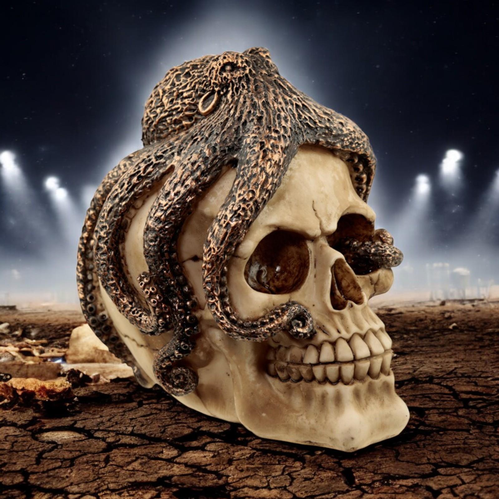 Elevate your decor with this Fantasy Octopus Skull Figurine, a perfect blend of gothic and steampunk design. This artistic piece is intricately crafted, capturing the mystery of deep-sea creatures combined with a Victorian-inspired aesthetic.