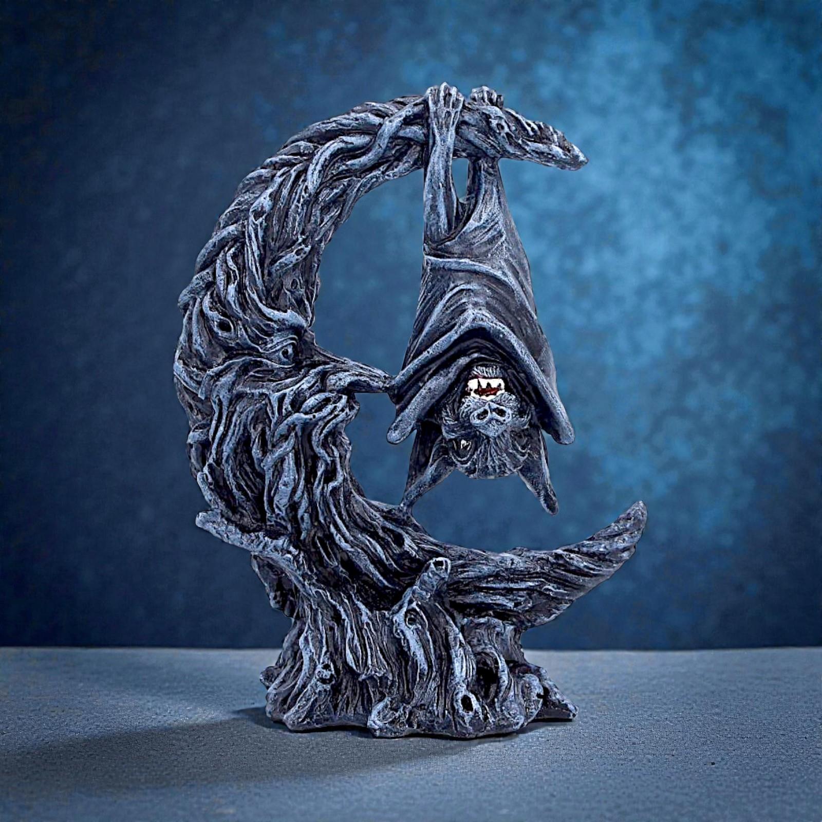 Gothic Bat Moon Figurine Dark Fantasy Decor Crescent Moon Horror Ornament