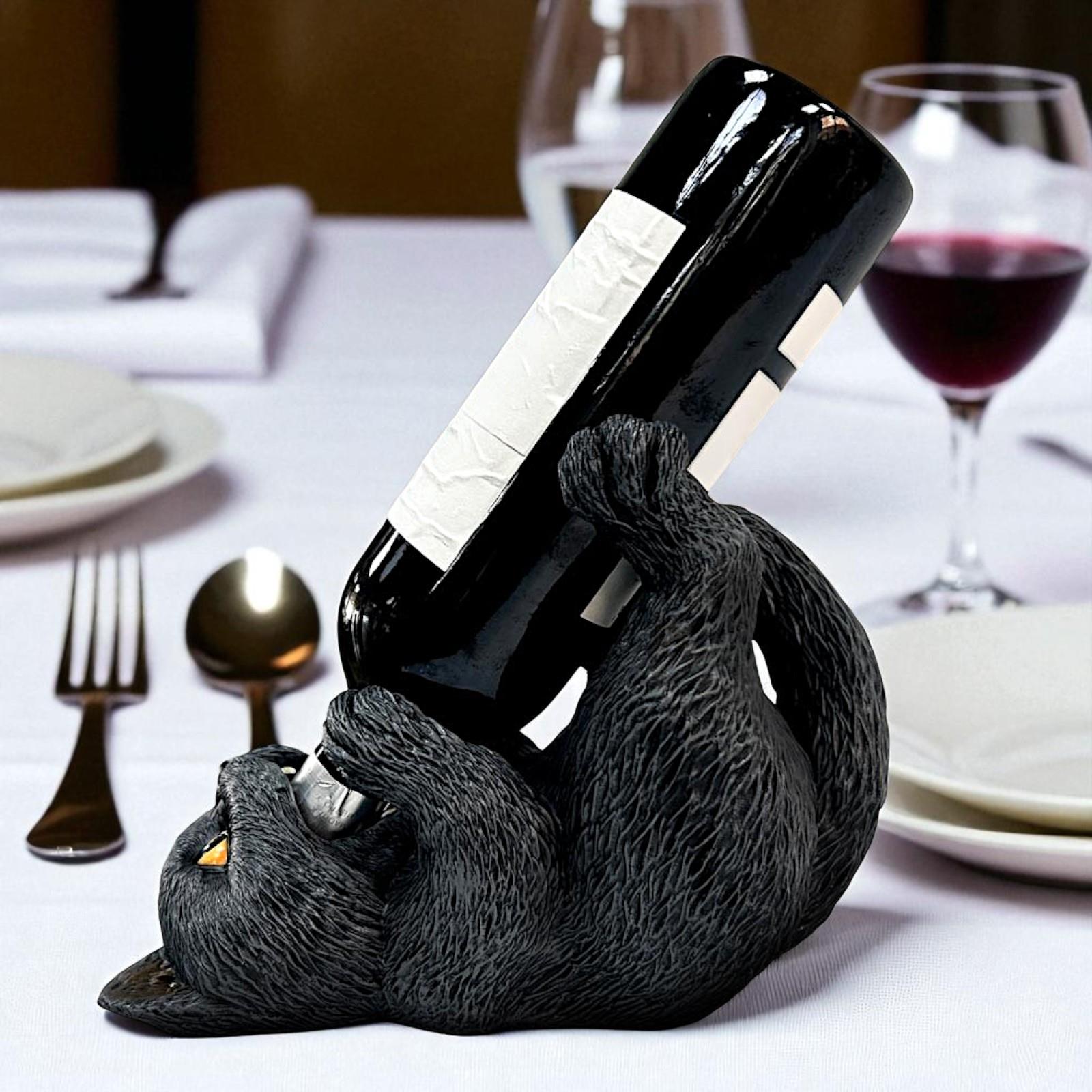 Add a touch of playful charm to your home bar or kitchen with this quirky Black Cat Guzzler Wine Bottle Holder. Crafted from premium resin and lovingly hand-painted, this mischievous black cat lies on its back, cradling your favourite wine bottle in its paws with the neck snugly fitted into its mouth.