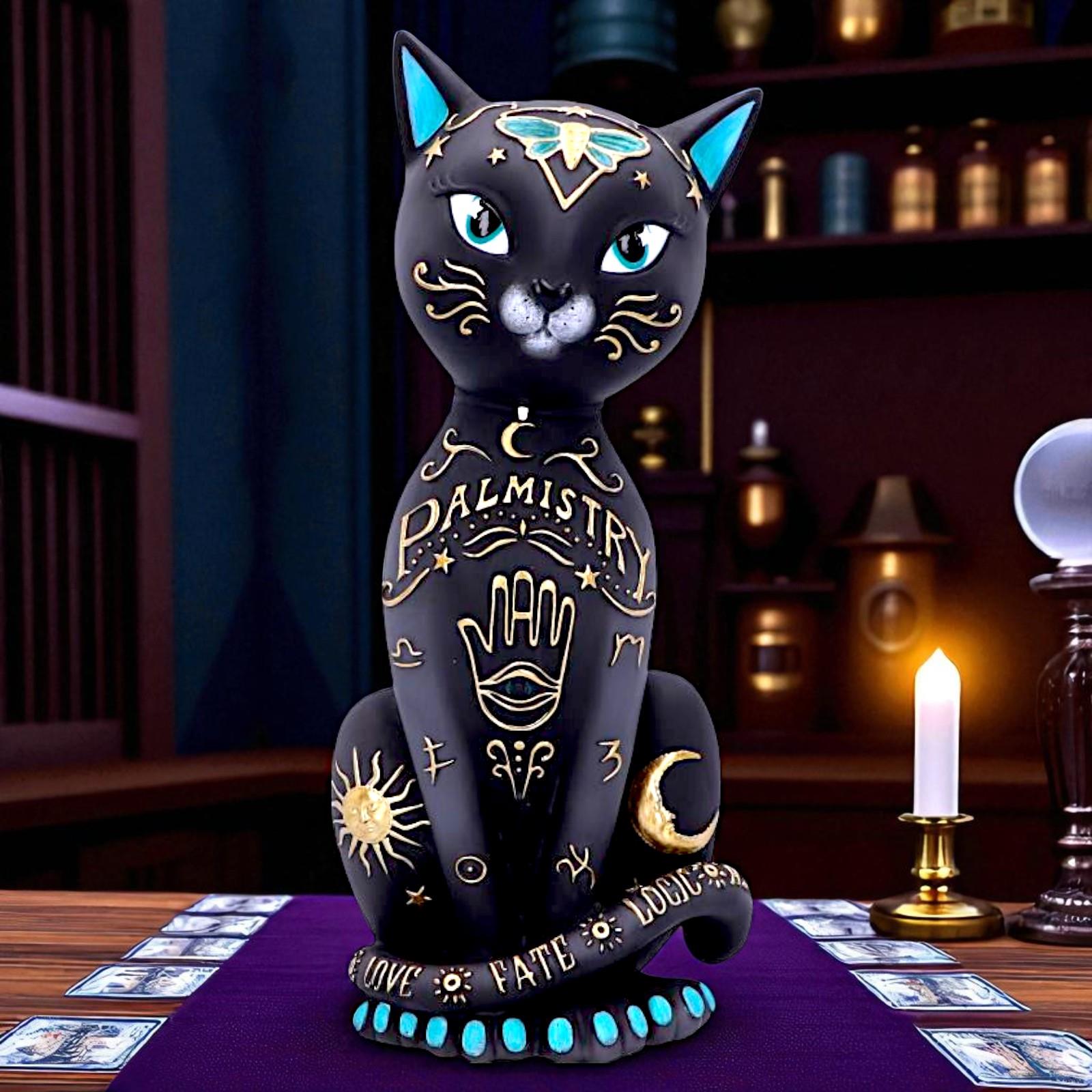 Gothic Palmistry Cat Statue Wiccan Mystical Figurine Astrology Witch Home Decor