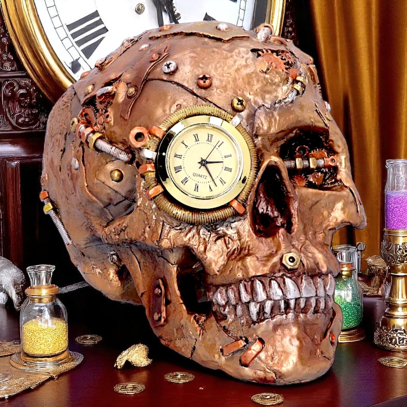 Gothic Steampunk Clockwork Skull Skeleton Figurine Gear Mechanical Cog Art Decor