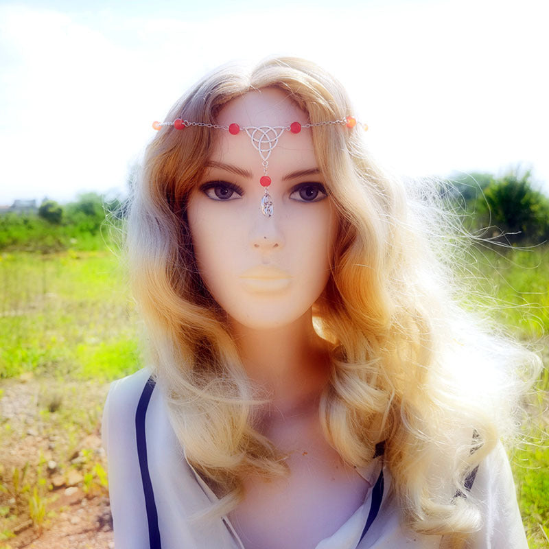 The headband is designed for versatility and comfort, measuring approximately 50-55cm in length with an additional 5cm extension chain for a customized fit. It is crafted from durable alloy, ensuring that it withstands the rigors of daily wear while still maintaining its striking appearance. The unique Irish knot shape adds a touch of ancient allure, connecting you to the age-old traditions of witchcraft and mysticism.