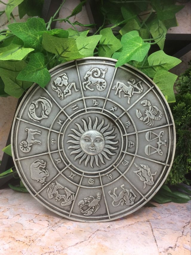 Handcrafted Astrology Wall Plaque with Mystical Zodiac Symbols for Wicca Pagan Altar Decor