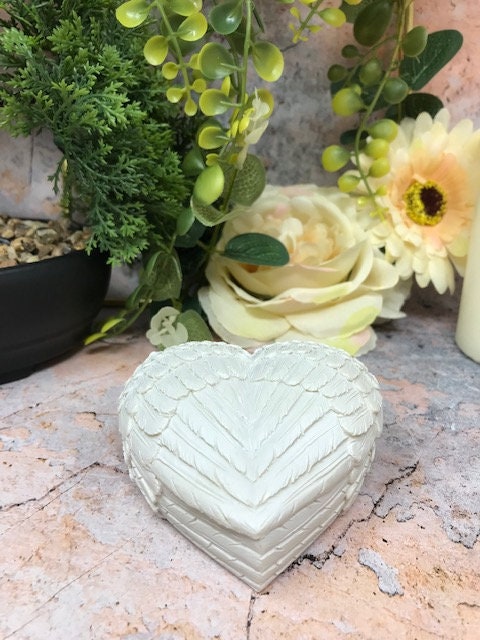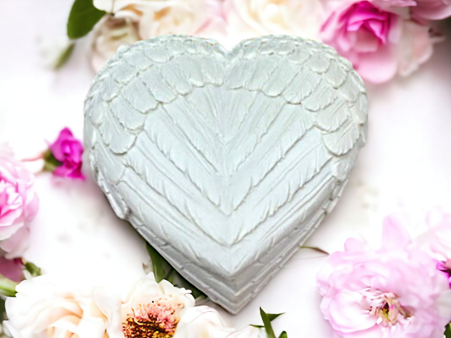 Heavenly Angel Wings Heart Box, Resin Trinket Box, Love and Cherish Keepsake Holder, Spiritual Home Decor, Memorial Gift Idea