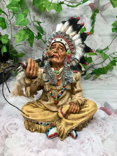 Indian Chief Smoking a Peace Pipe Figurine Native American Collection Sculpture