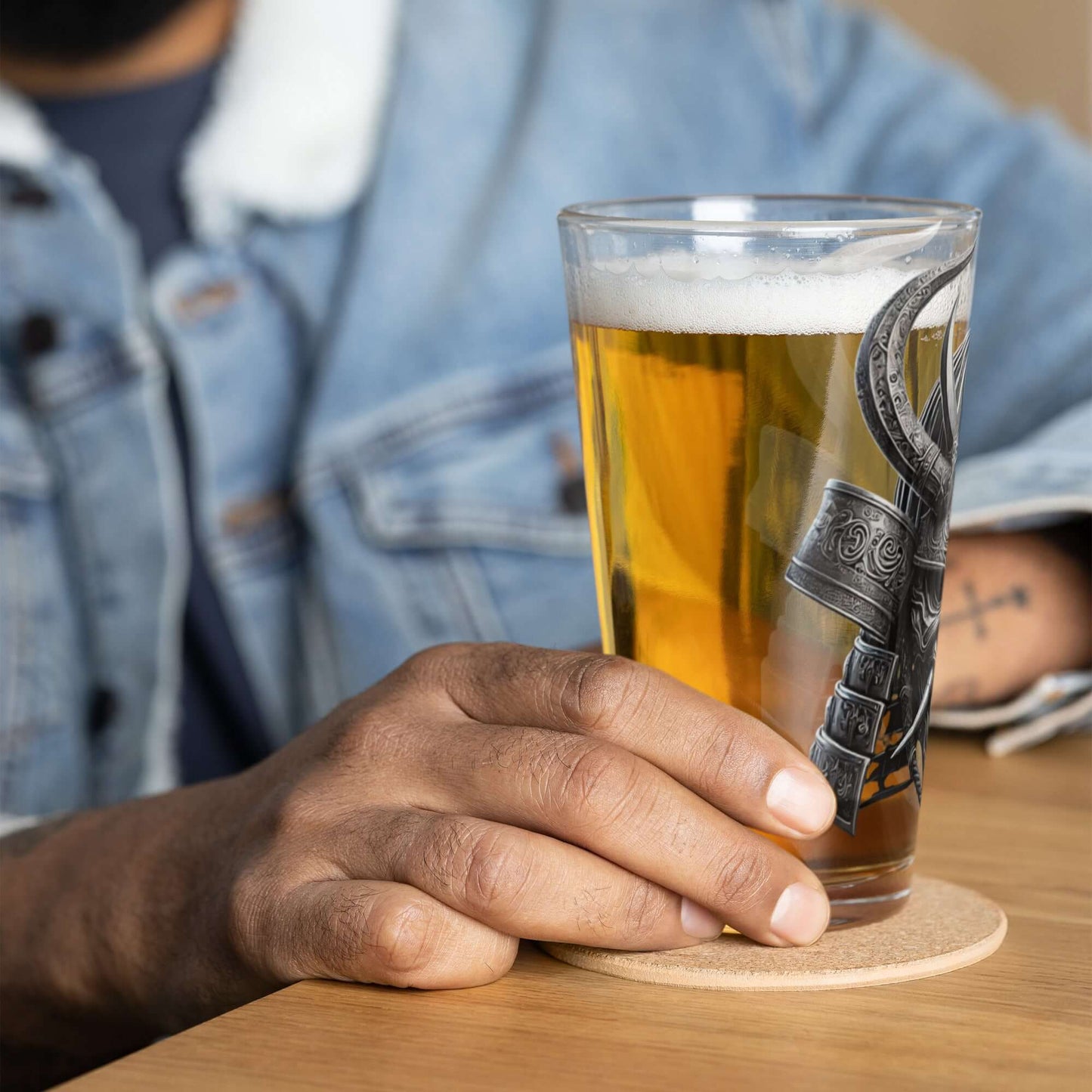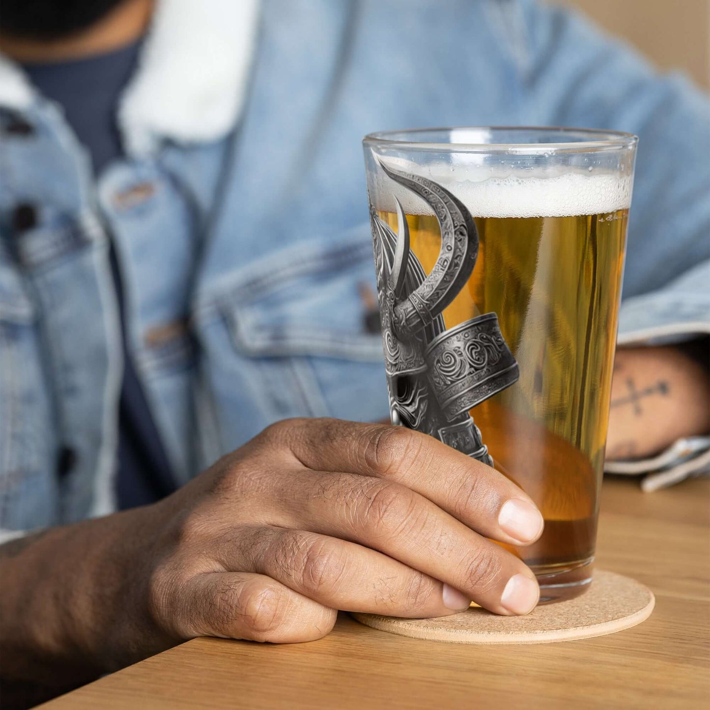 Whether you're enjoying a refreshing beverage or displaying it as part of your decor, this glass is both functional and a piece of art. The Kabuto Pint Glass is ideal for enthusiasts of Japanese culture, samurai warriors, or anyone looking to add a touch of bold folklore to their drinkware collection.