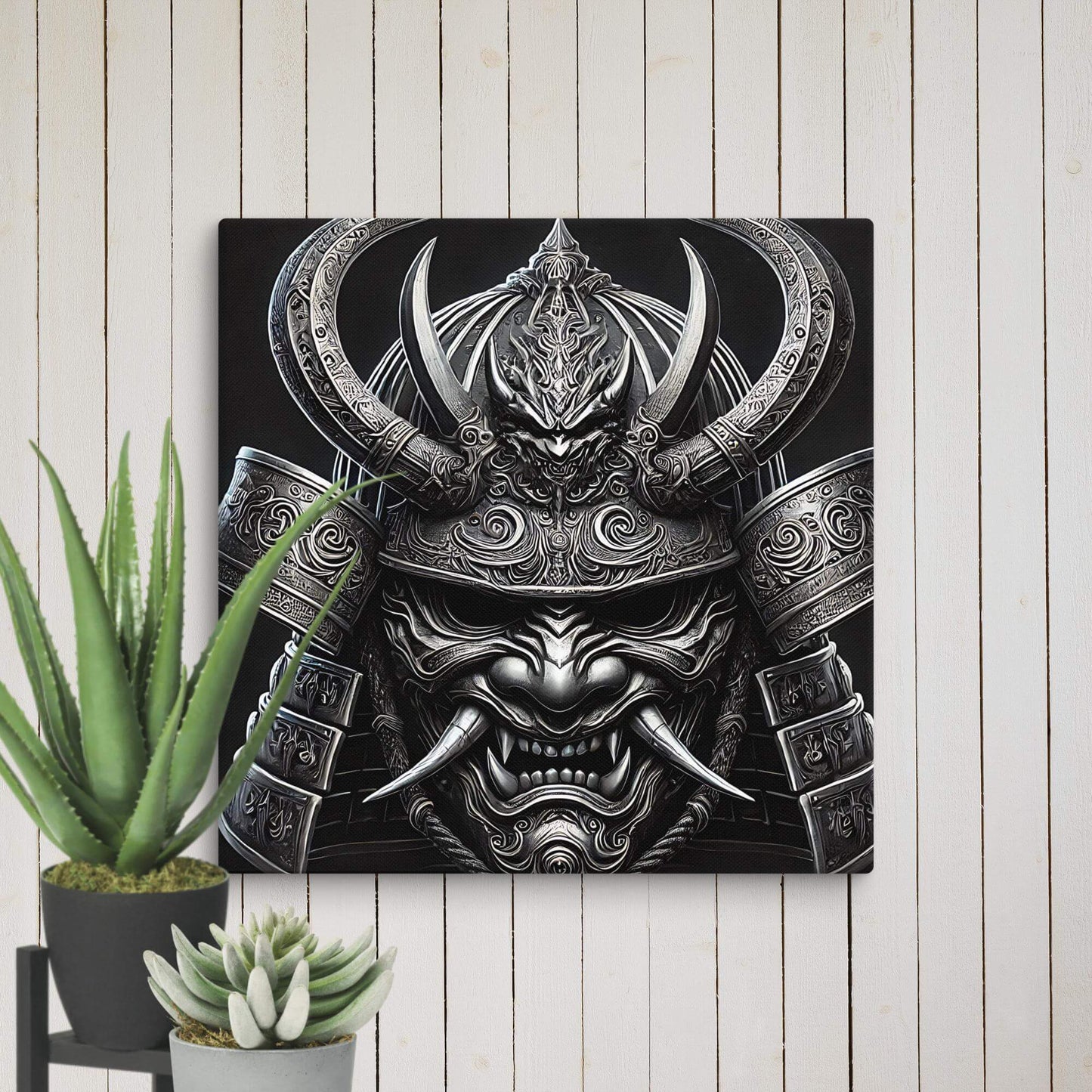 Kabuto Samurai Warrior Canvas – 18" x 18" Bold Japanese Armor Art