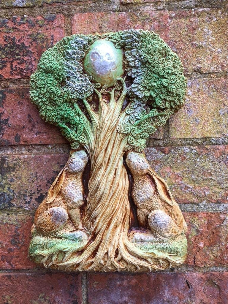Large Moon Gazing Hare Pagan Wall Plaque Wiccan Sculpture Garden Ornament