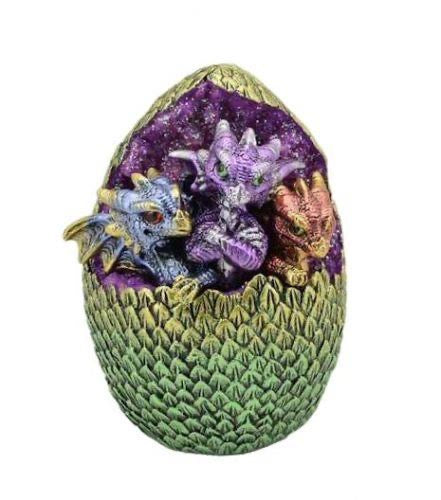 LED Dragon Hatchlings in Egg Ornament - 15.2cm Fantasy Resin Figurine with Light