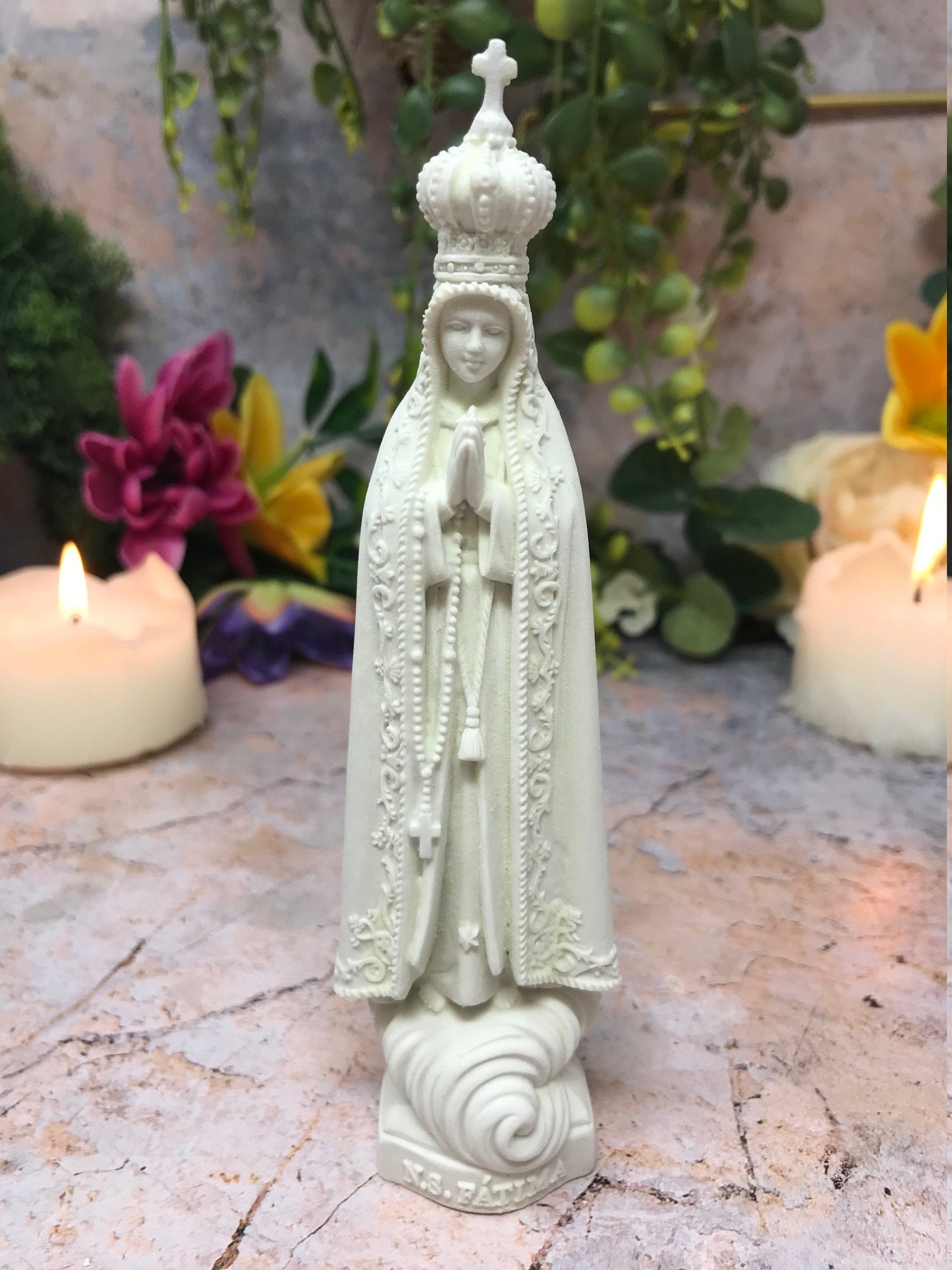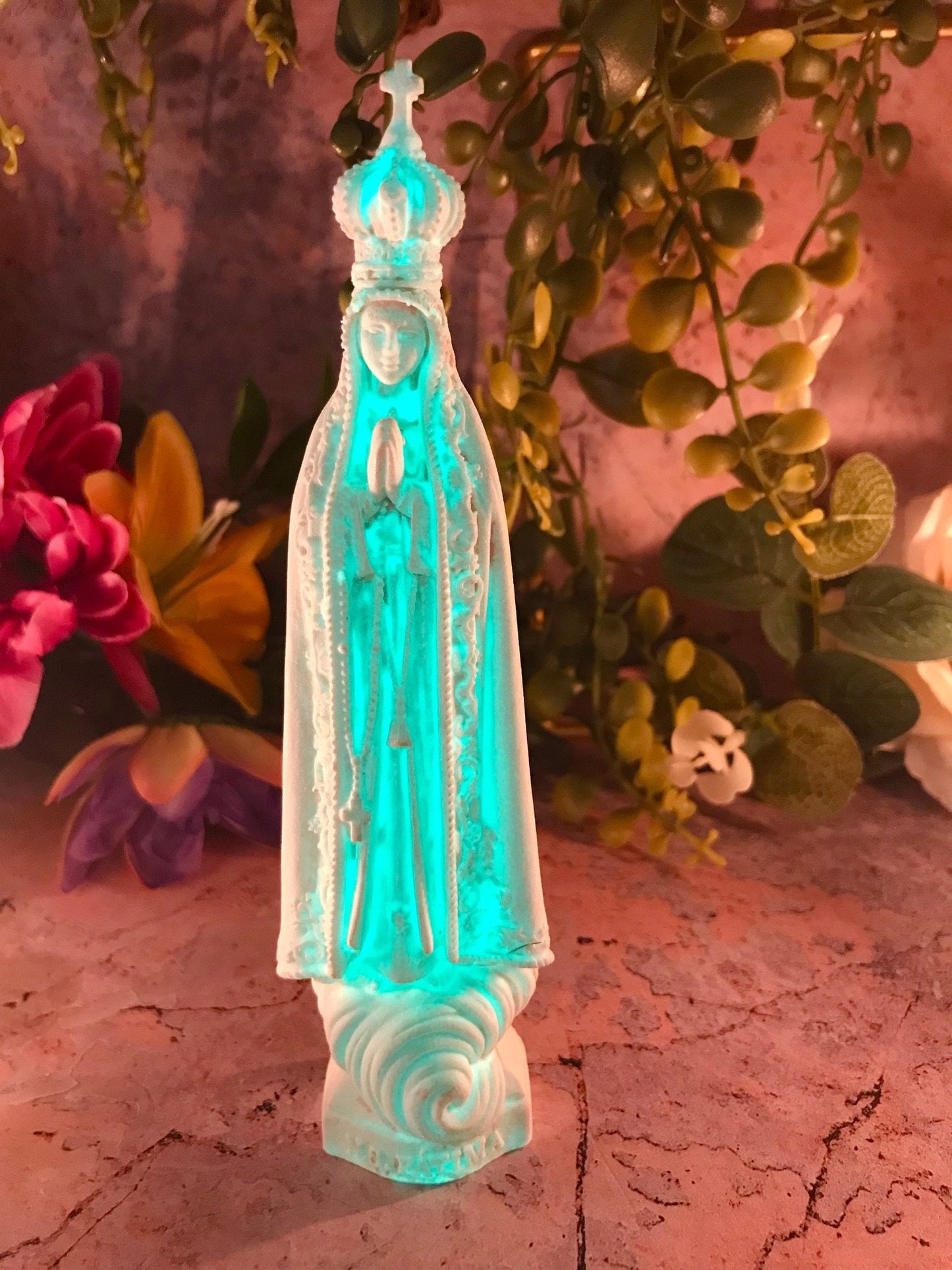 Luminous Our Lady of Fatima Statue - Glow in the Dark Virgin Mary Figurine, 15cm Spiritual Night Light, Religious Room Decor, Christian Gift