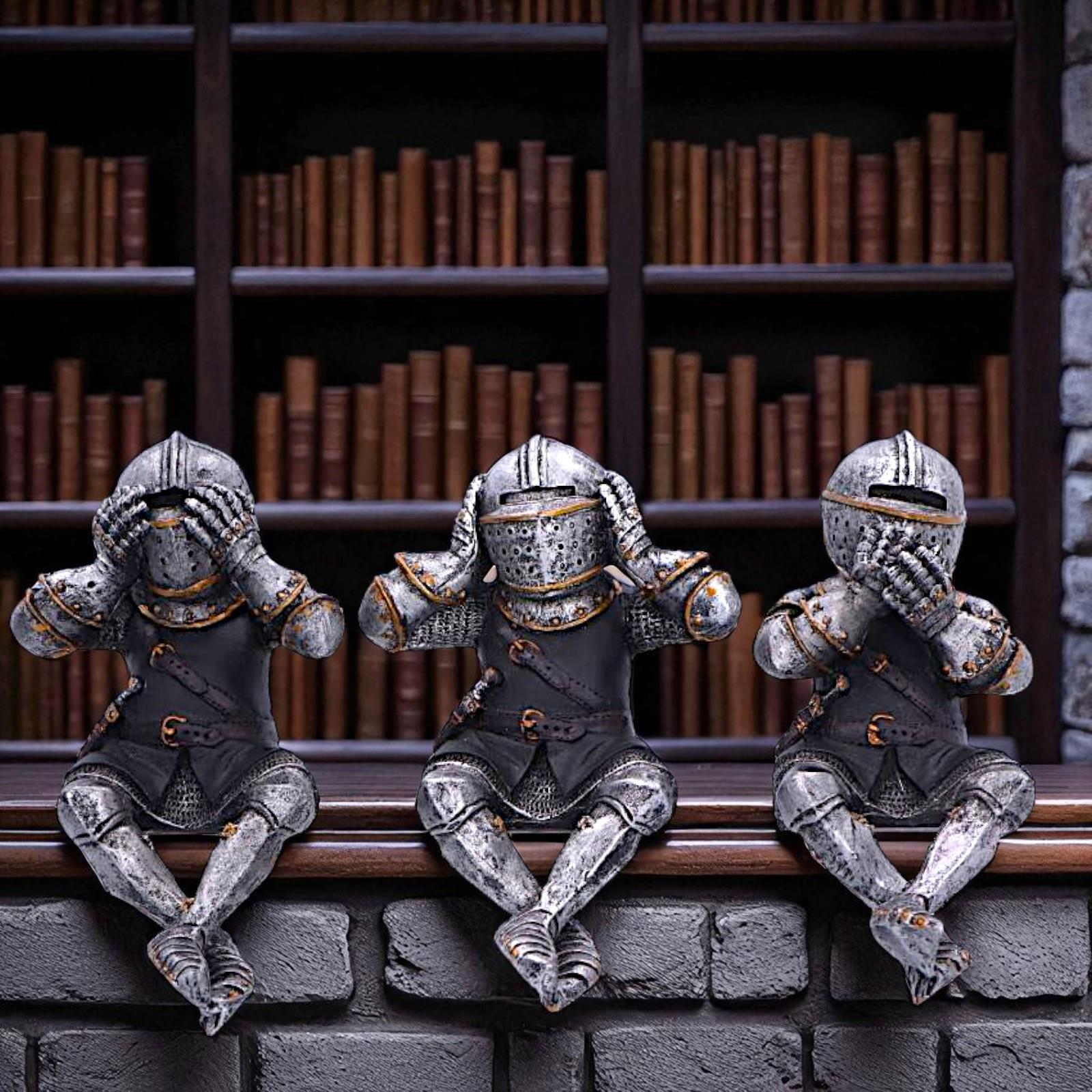 Bring medieval charm with a humorous twist into your home with this Three Wise Knights Shelf Sitter Set (11cm). This quirky trio of fully armoured knights sits cross-legged, each one posed in the classic “See No Evil, Hear No Evil, Speak No Evil” stance – a perfect blend of gothic humour and knightly honour.