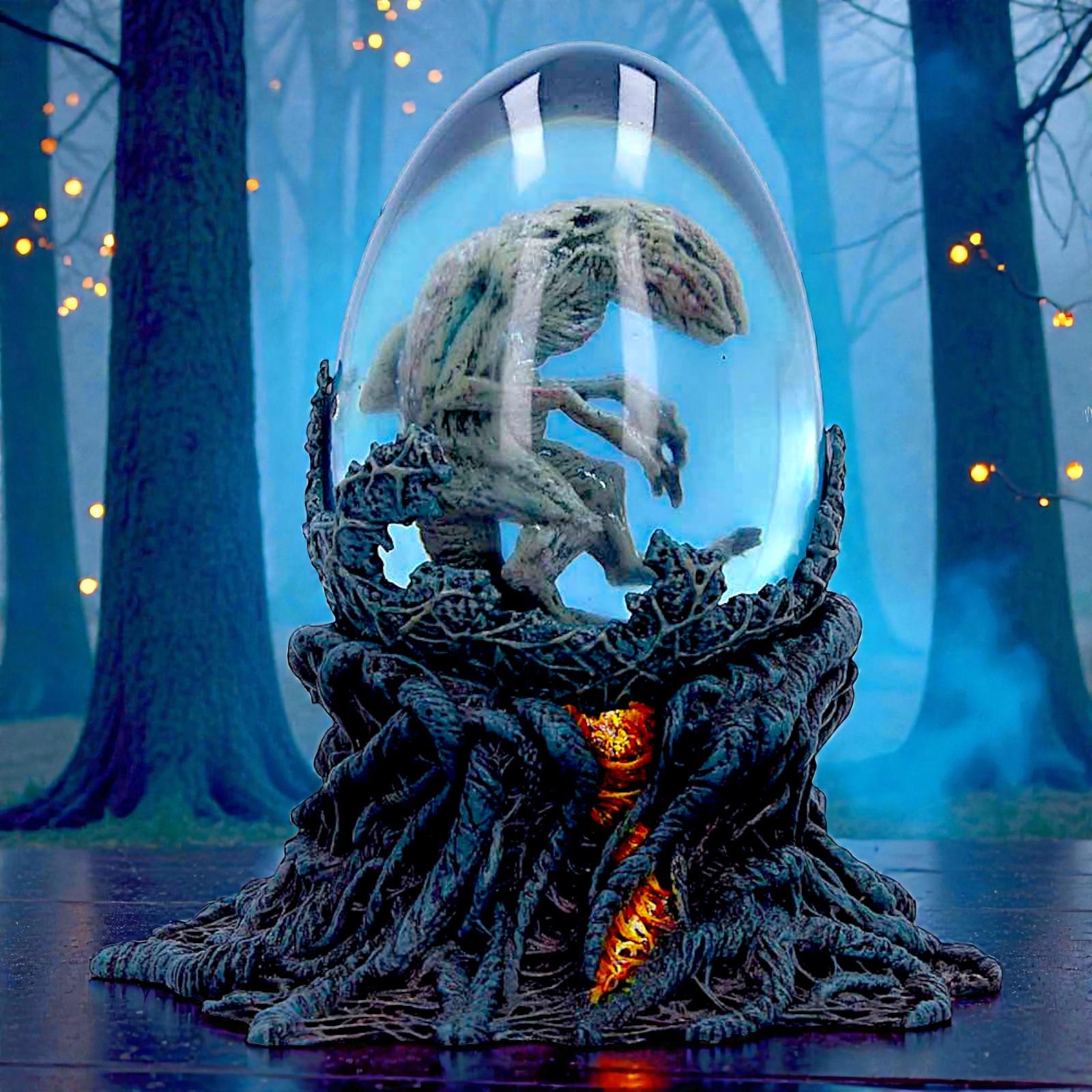 Standing at 16cm, this highly detailed collectible features a Demodog encased inside a clear glass-style egg dome, perched atop a sculpted base inspired by the twisted roots and textures of the Upside Down. The dramatic design captures the unsettling essence of the hit Netflix series while remaining a functional keepsake box.