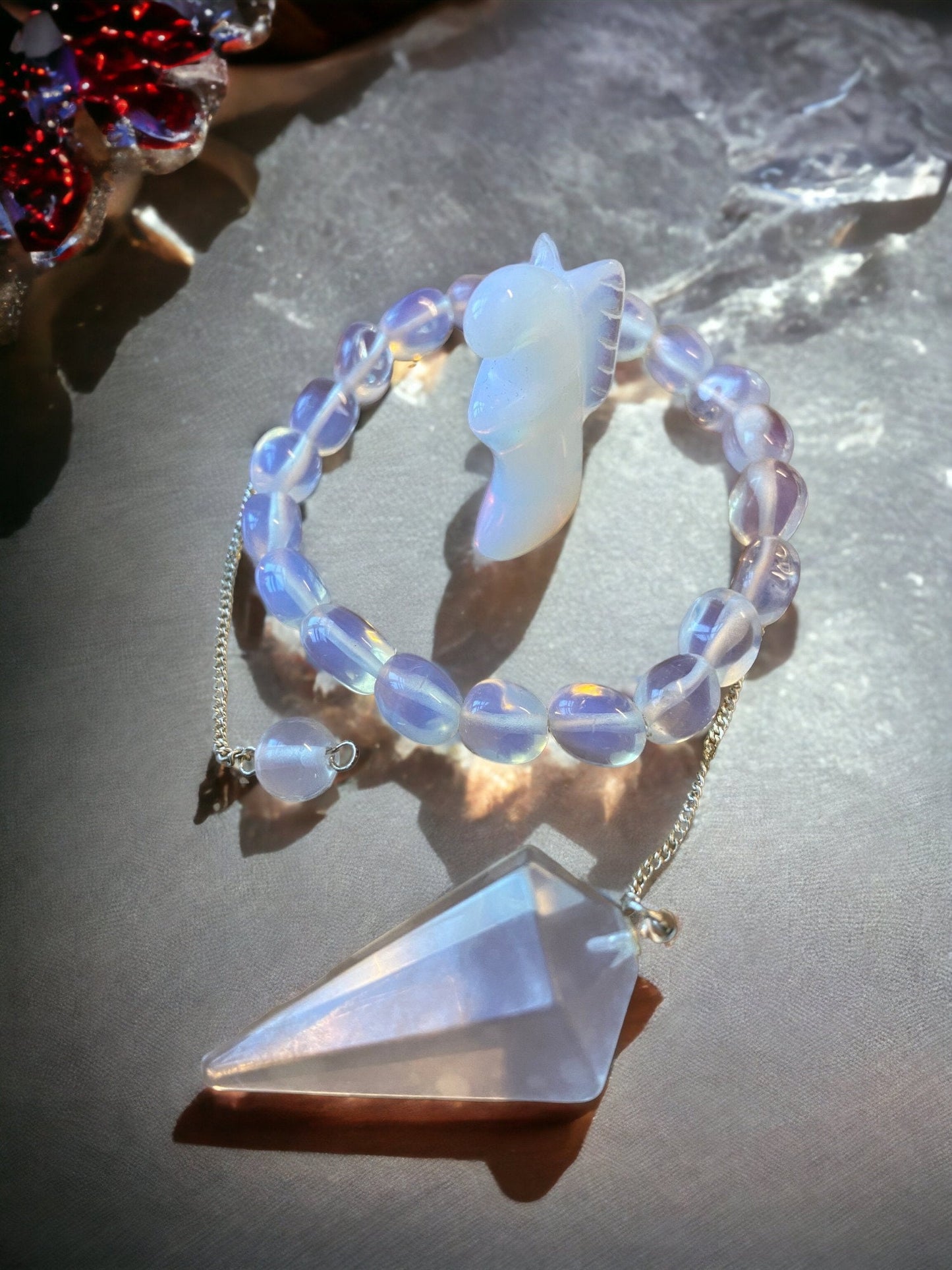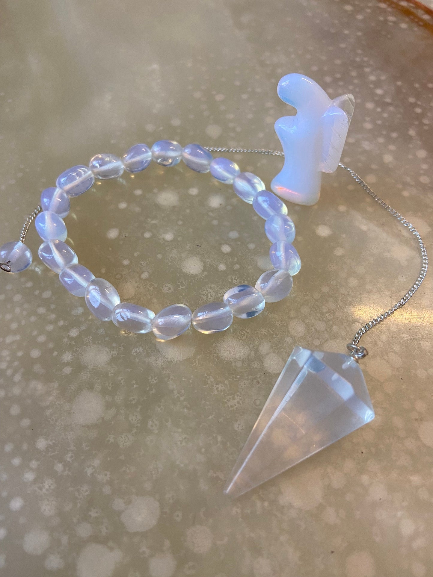 Opalite Angel, Bracelet & Dowsing Pendulum Set - Serene Energy Healing Collection