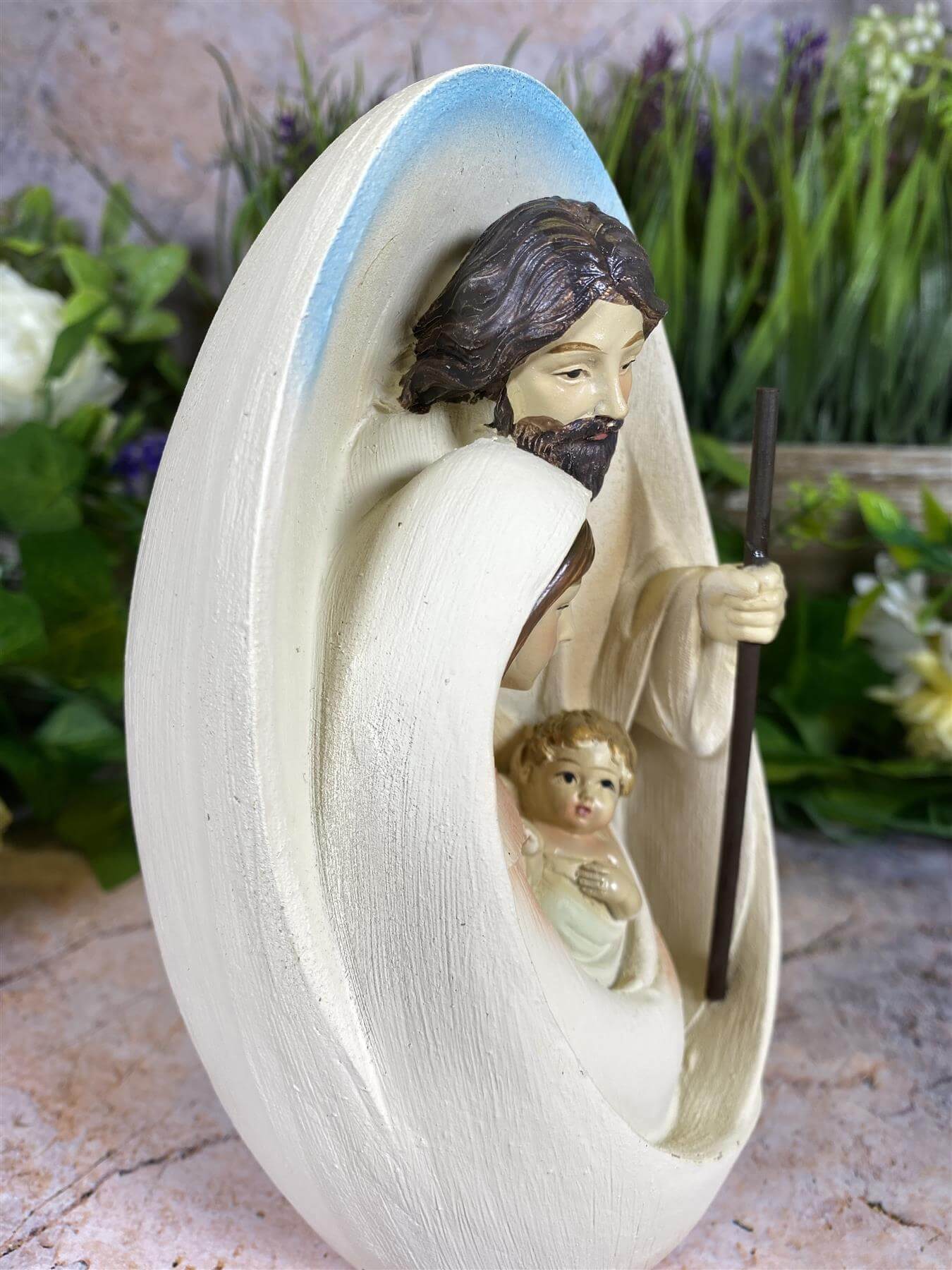 Resin Craftsmanship: Made from resin, this statue is durable, with a detailed, lifelike portrayal of the Holy Family.