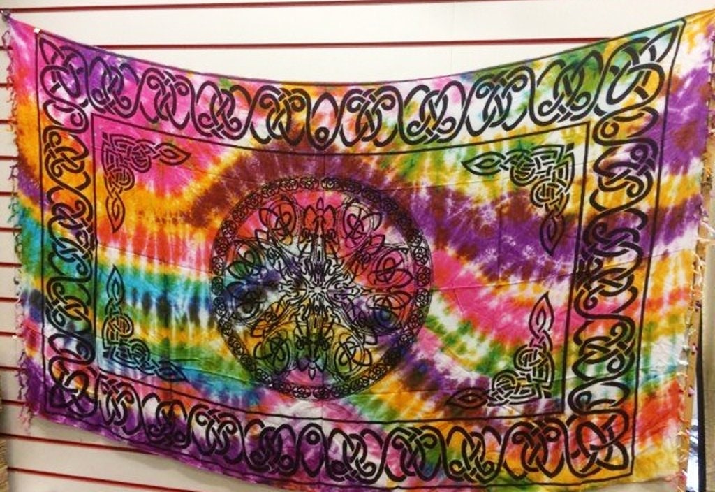 Psychedelic Tie-Dye Wall Tapestry Handmade Silky Rayon Fabric with Celtic Knot Design, Versatile Bohemian Decor, Unique Multicolor Scarf
