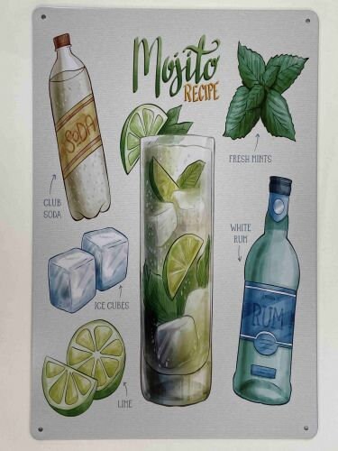Quench Your Thirst with our Vintage Style Metal Mojito Recipe Sign House Warming Gift