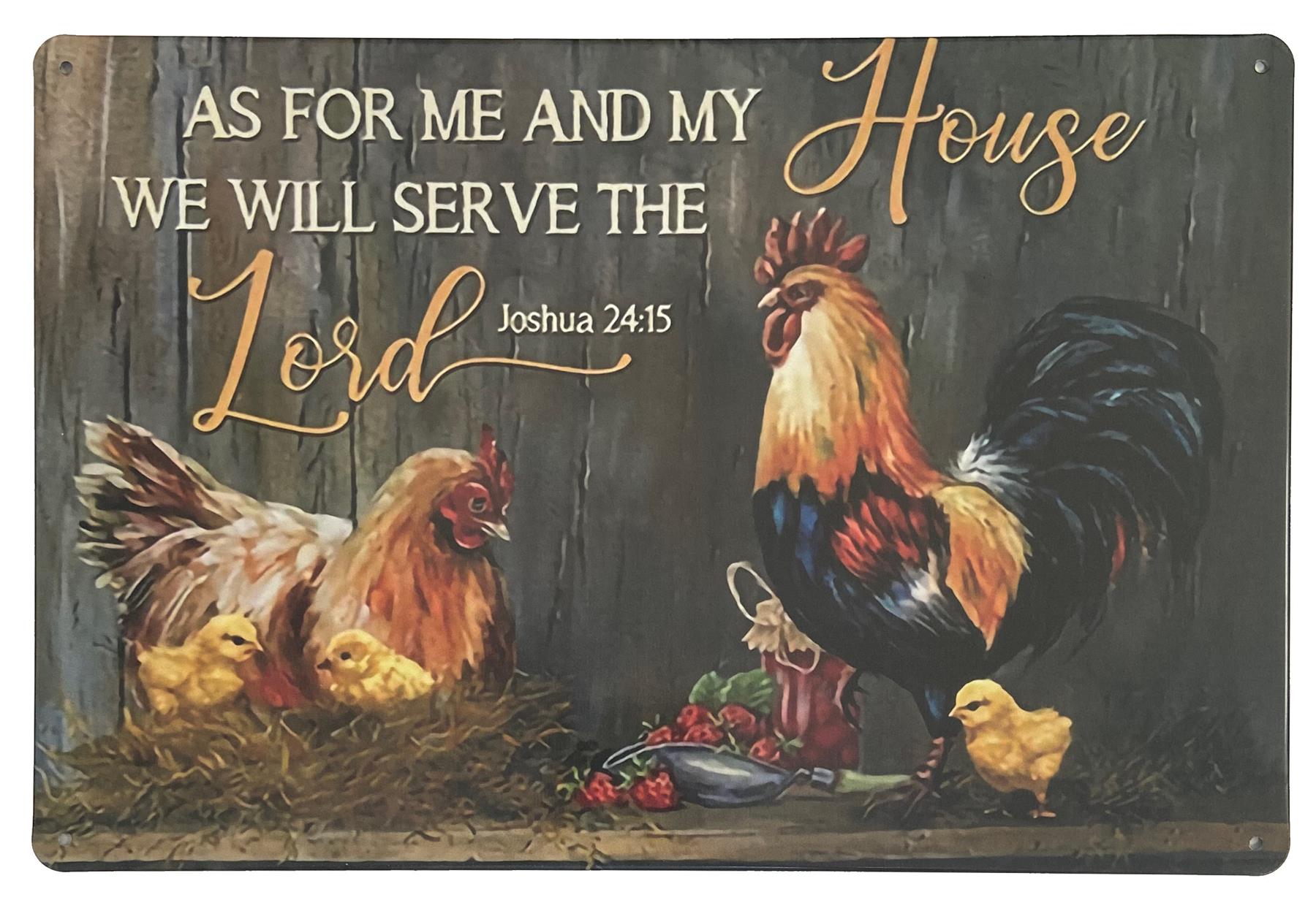 Religious Rustic Metal Sign “As For Me And My House” Farm Rooster Plaque Decor