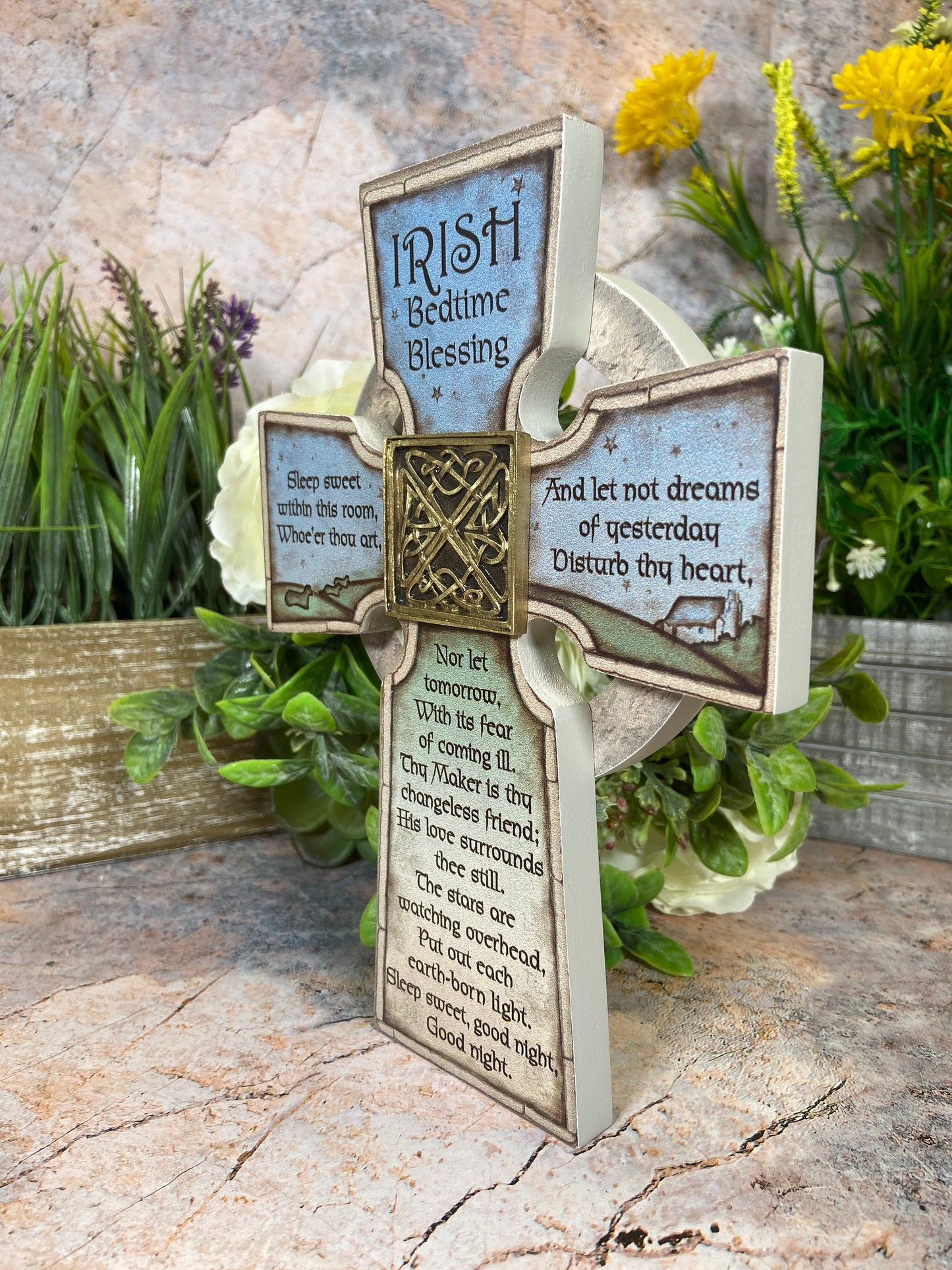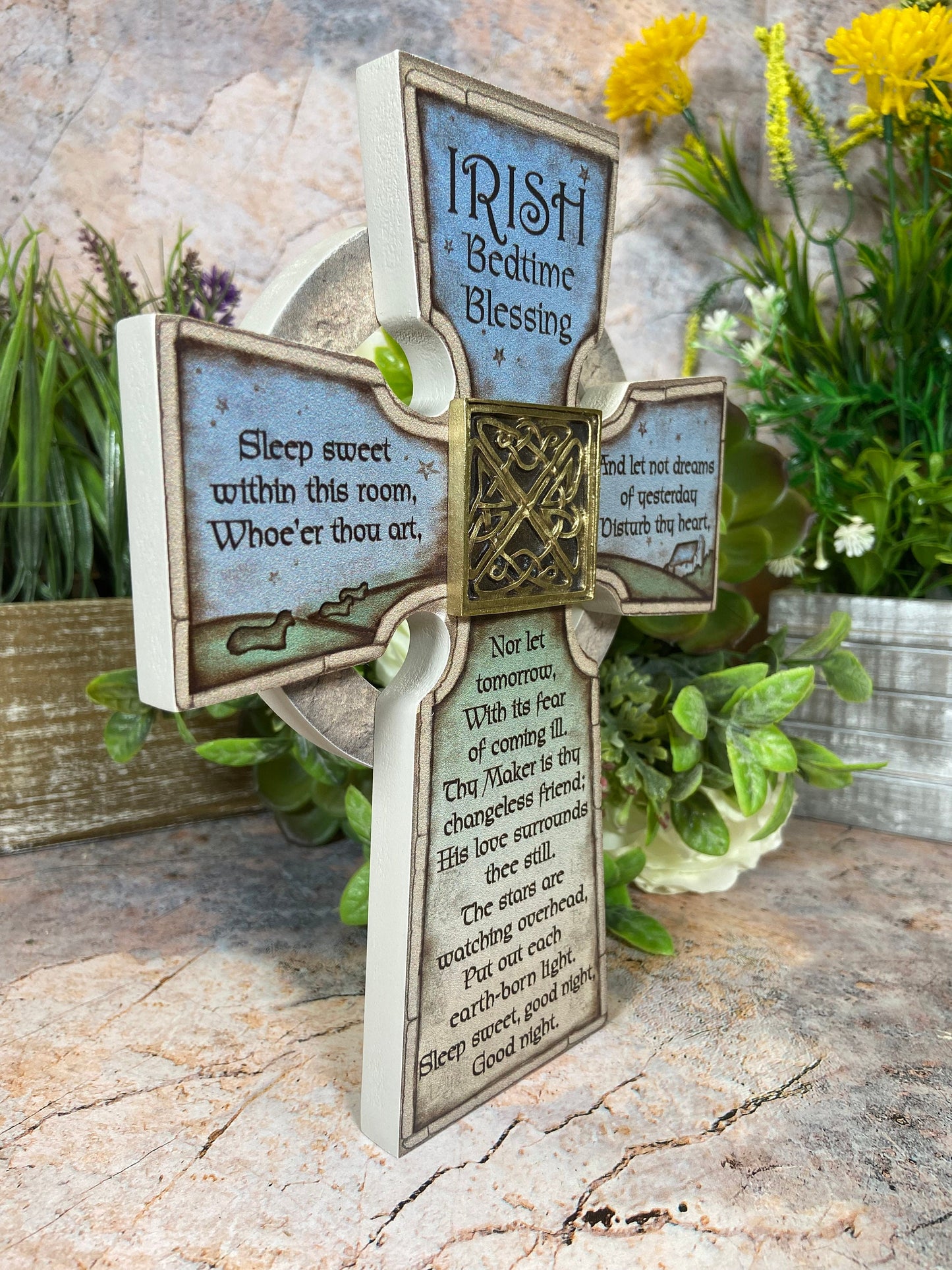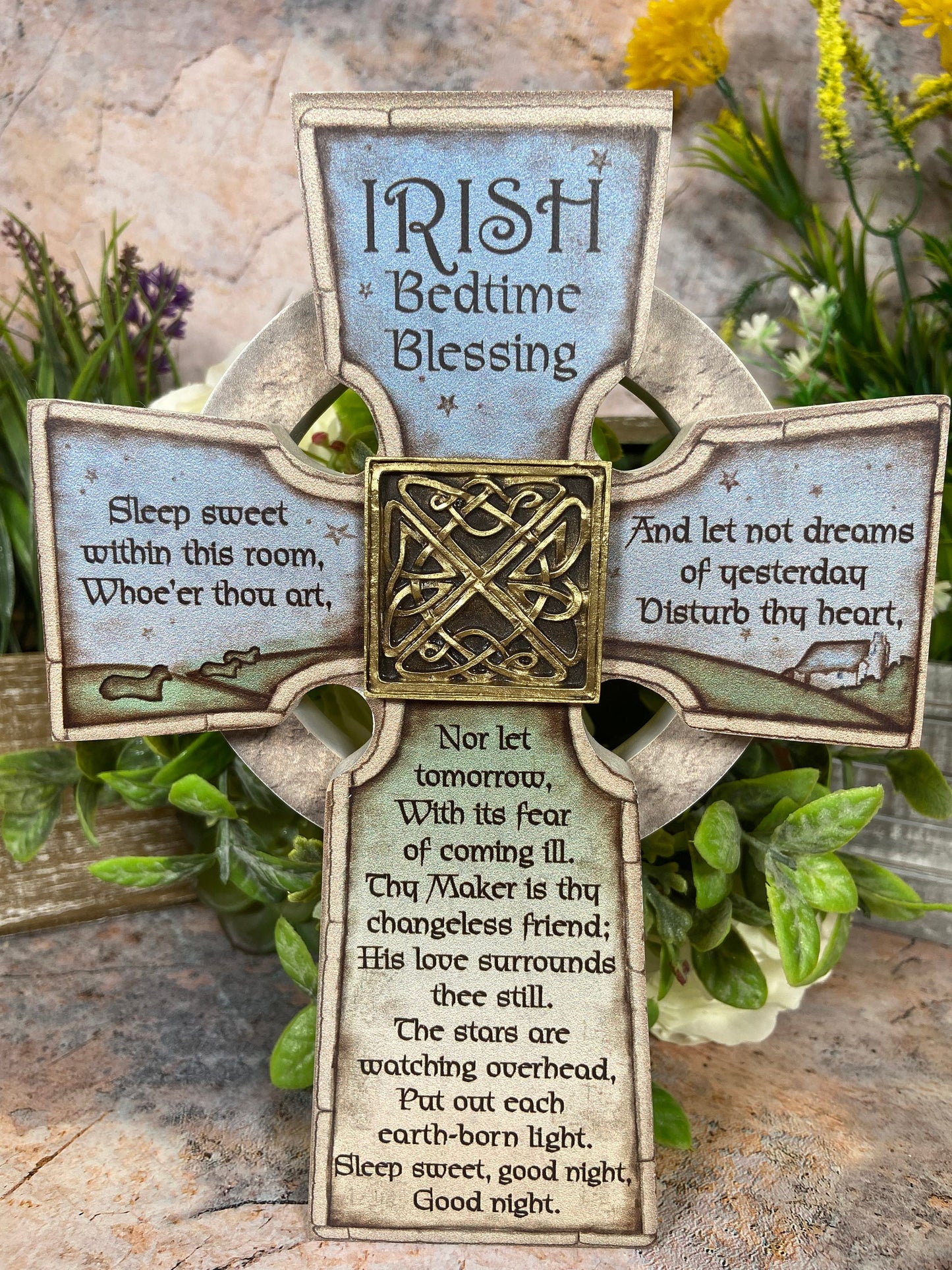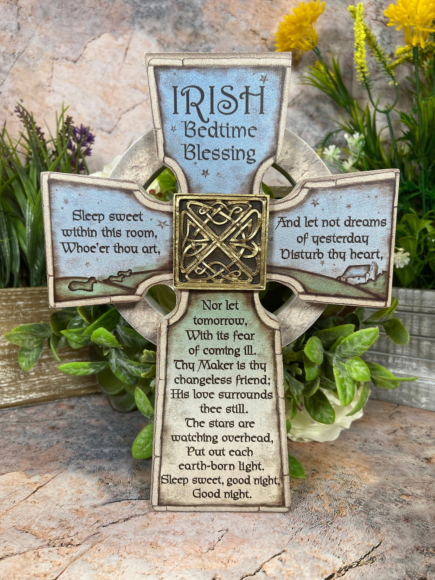 Resin Irish Cross Bedtime Blessing 21cm x 16cm - Handcrafted Celtic Home Decor