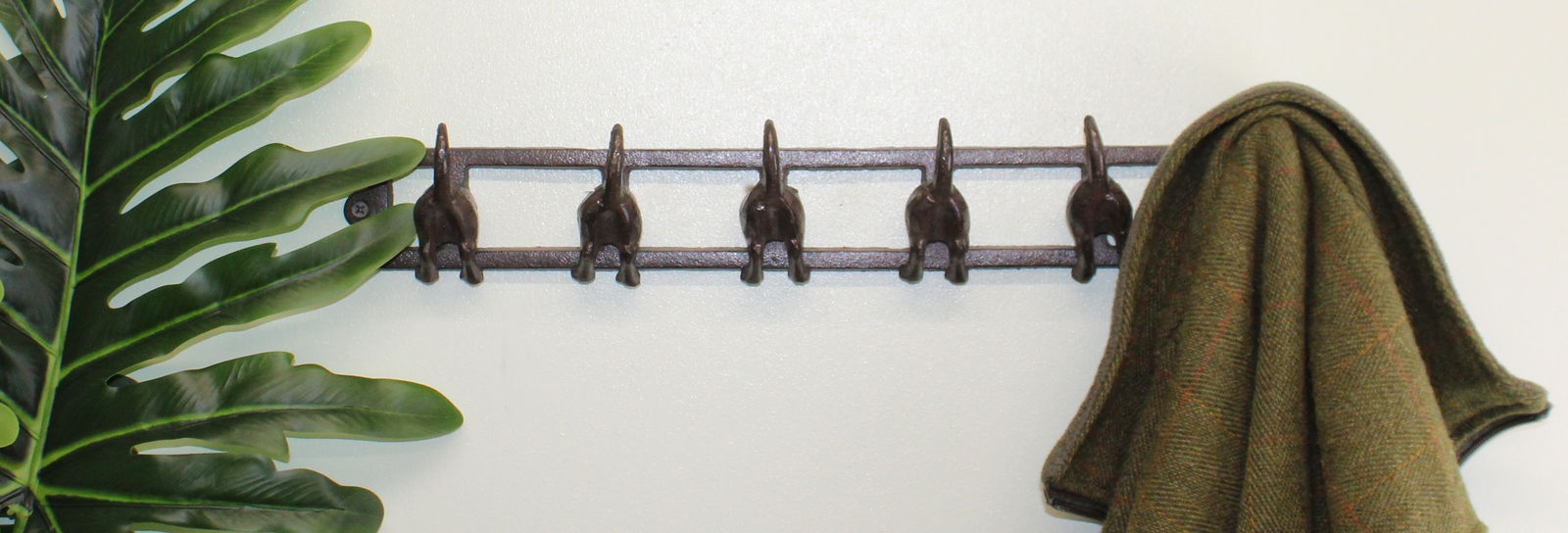 Rustic Cast Iron Wall Hooks, Dog Tail Design With 6 Hooks