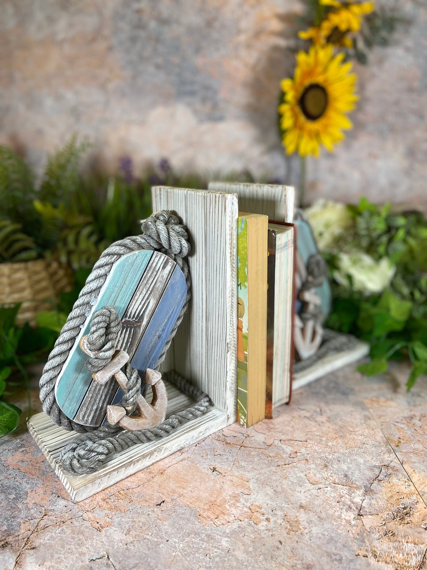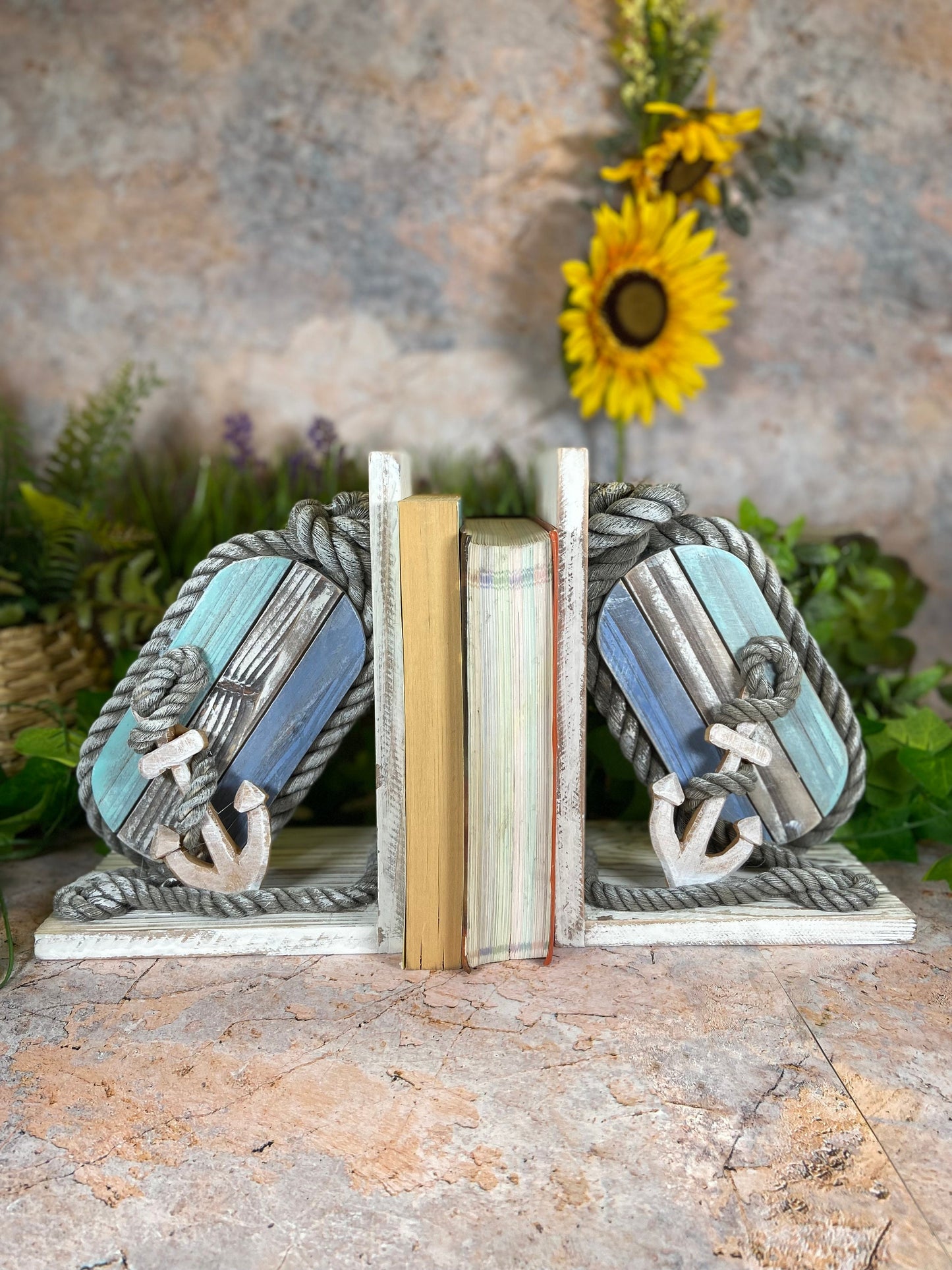 Rustic Nautical Charm Reclaimed Wood Anchor and Rope Book Ends