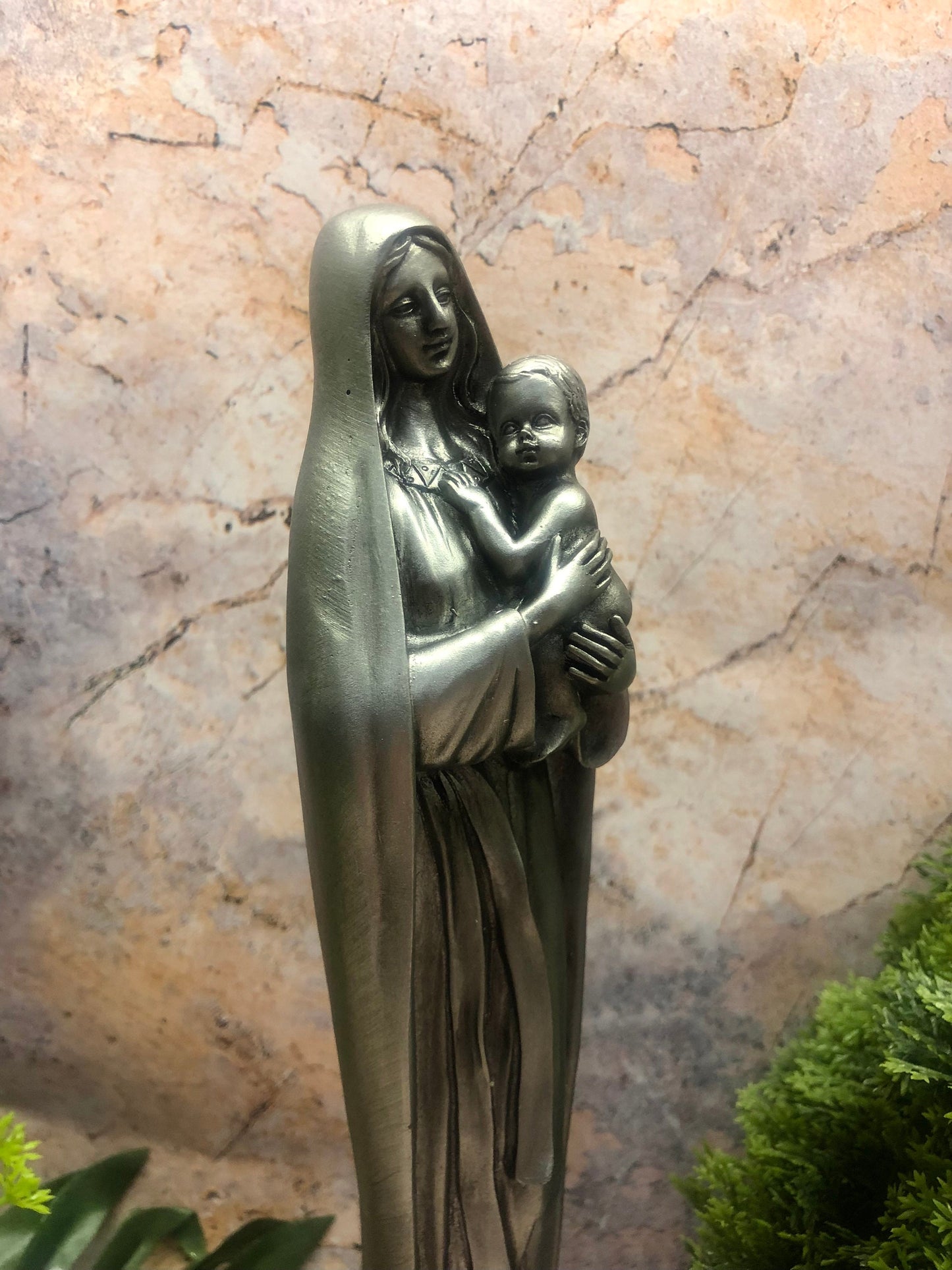Whether placed on a mantelpiece, an altar, or in a quiet corner of your room, this statue is a gentle reminder of the eternal bond between mother and child, and the loving watchfulness of the Divine. It serves as a focal point for personal meditation, a touchstone for those seeking solace, and a beautiful embodiment of maternal care.