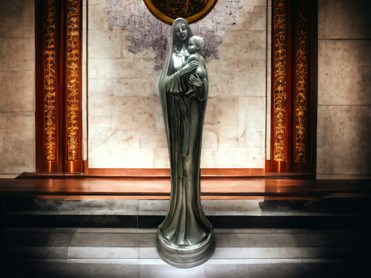Let the gentle presence of the Virgin Mary and her child inspire your daily life with their enduring message of love and compassion. Add this timeless sculpture to your sacred space and feel the embrace of its peace and beauty every day.